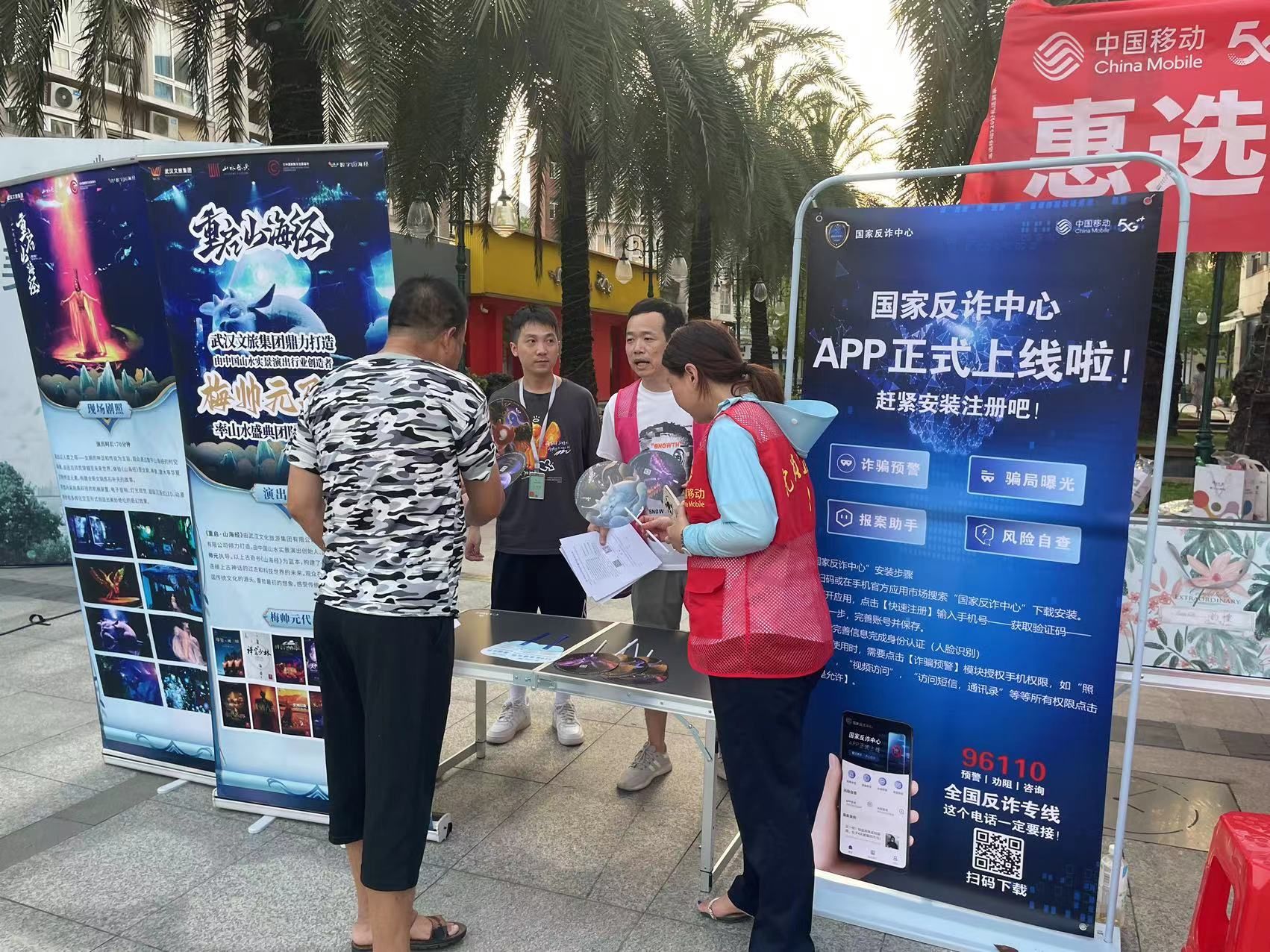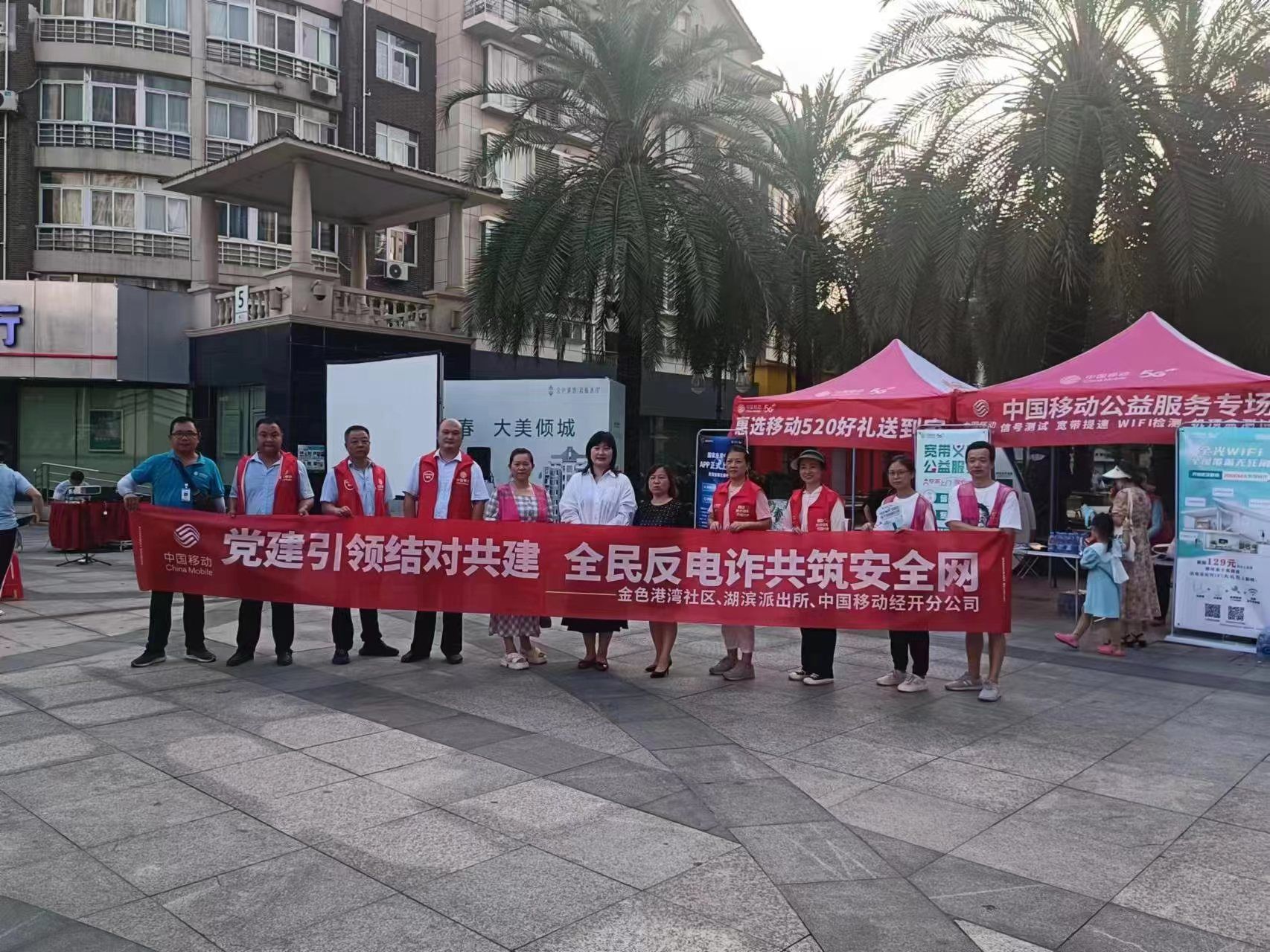 车谷融媒8月9日讯 8月4日晚,沌阳街道金色港湾社区联合湖滨派出所、中国移动经开分公司在法国街金色广场举行“党建引领结对共建 全民反电诈共筑安全网”为主题的宣传活动。