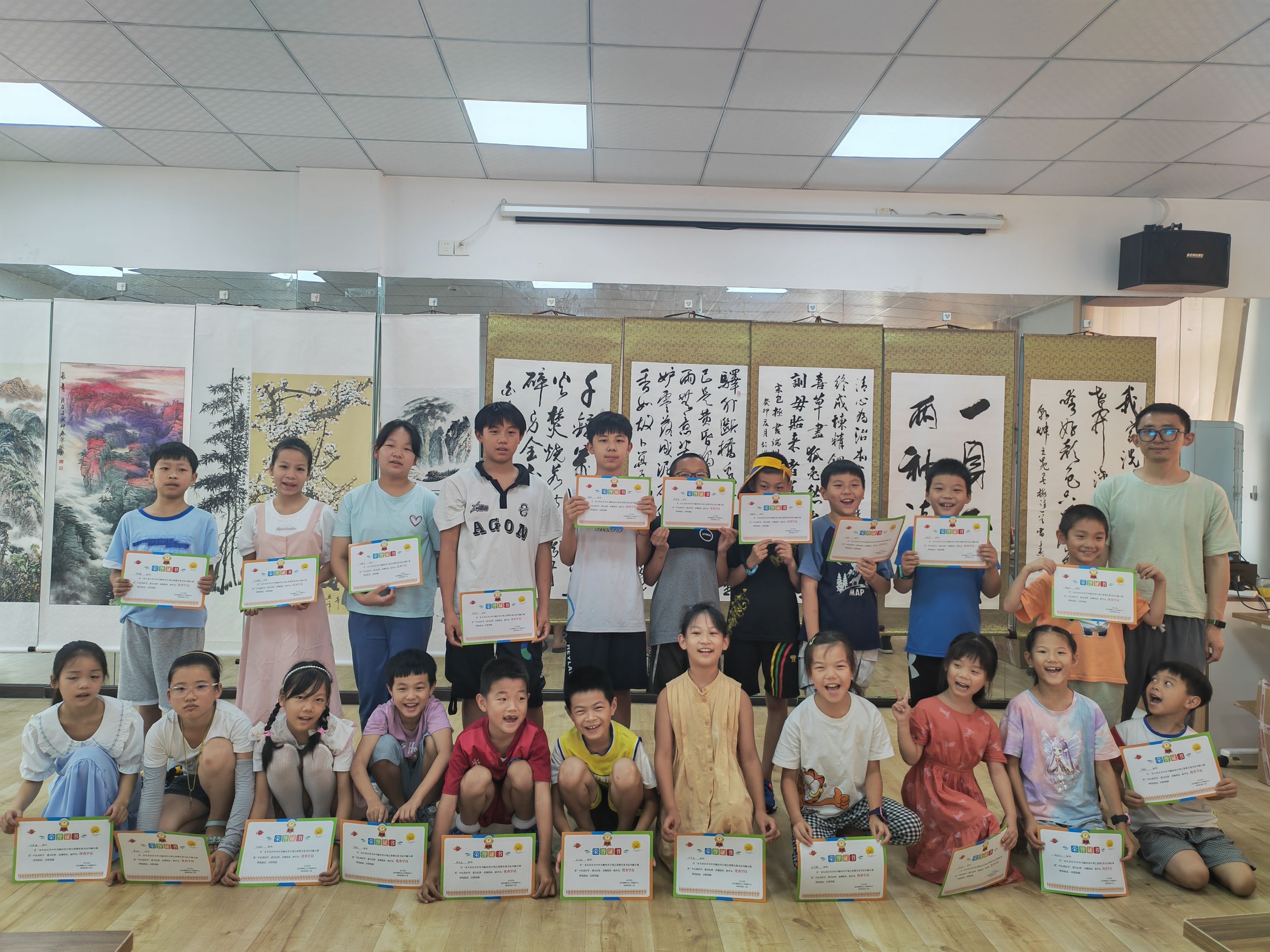 书法兴趣课堂老师结合生活常识,讲授书法相关知识,指导坐姿、执笔运笔姿势及基本技巧。在老师指导下,小朋友们能够独立完成简单的作品。