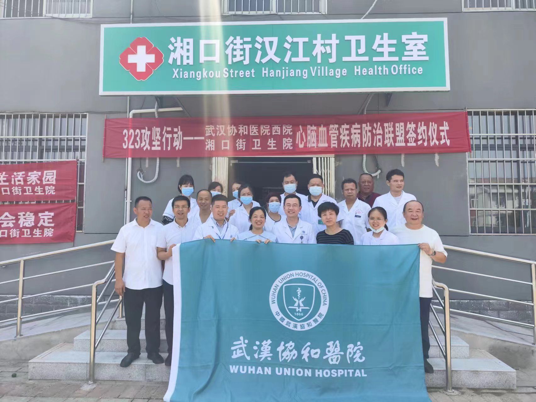 湘口街道有关负责人、武汉协和医院、湘口卫生院与汉江村签约防治联盟。