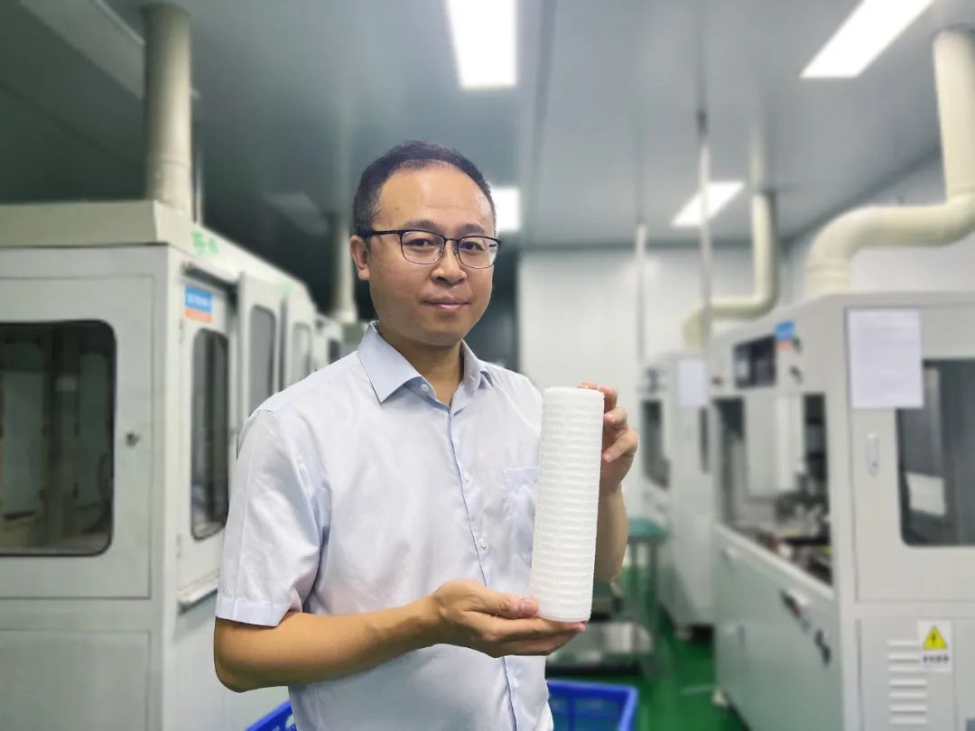 作为武汉经开区首批院士专家引领项目,今年5月,维晨科技正式投产,厂房面积约1100平方米。目前,维晨科技已开通一条年产量10万只的滤芯生产线,未来几年将持续扩大产线至年产量30万只。滤膜的产能则达到每年约一百万平方米。