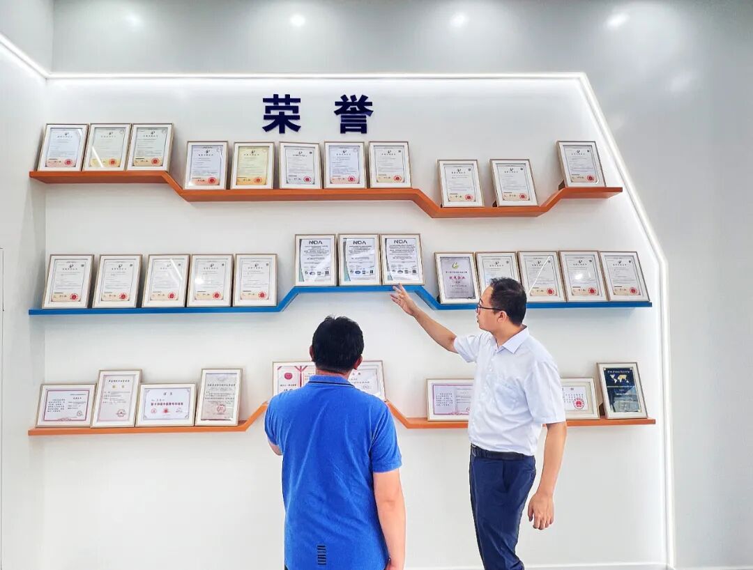 ▲ 维晨科技展厅里挂满一整面墙的专利证书。