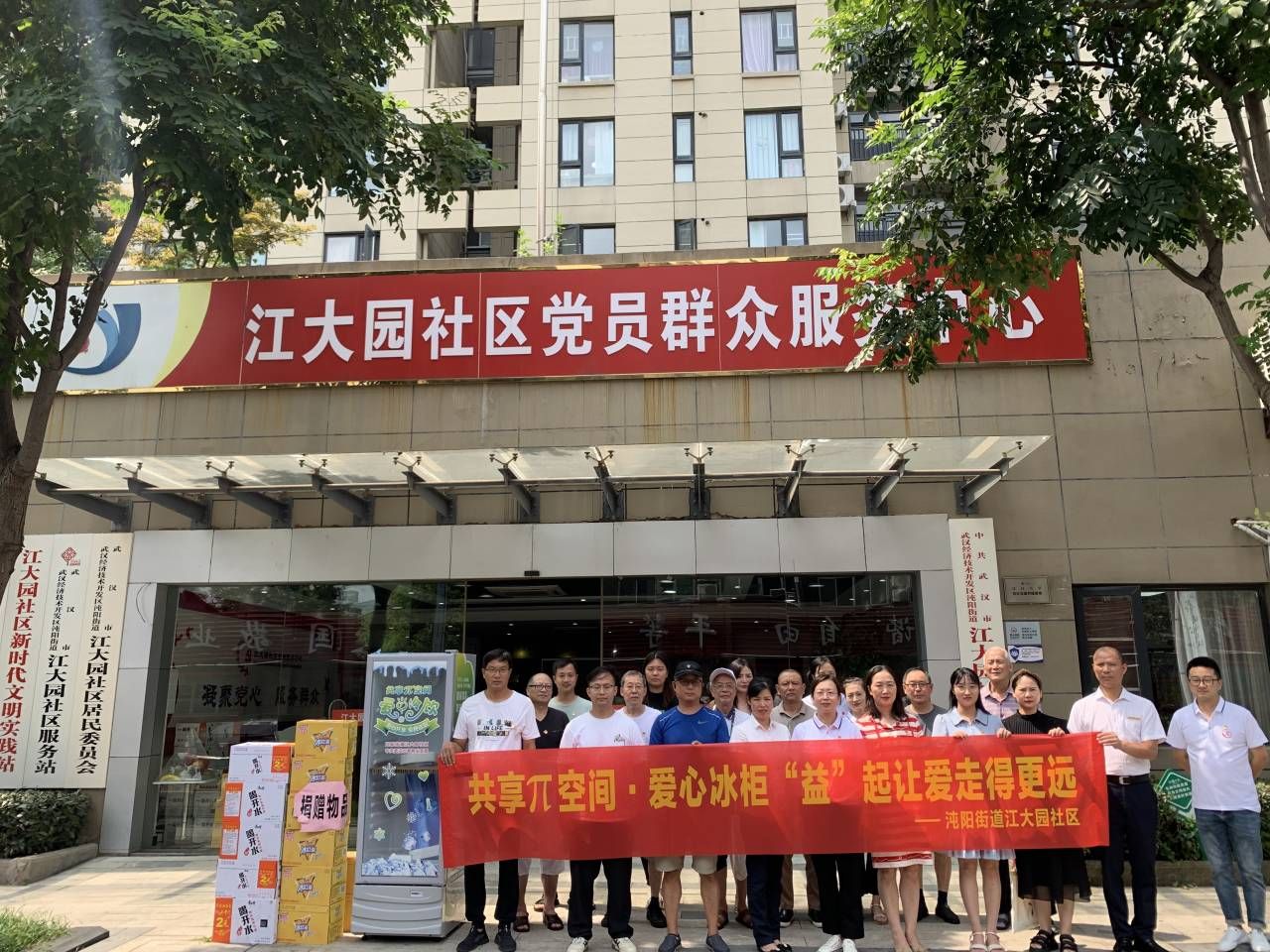 车谷融媒8月11日讯 近日,江大园社区党委联合武汉心港物业、社区邻里长代表、利川市跟班学习代表在江大园社区新时代文明实践站开展共享π空间·爱心冰柜“益”起让爱走得更远活动。