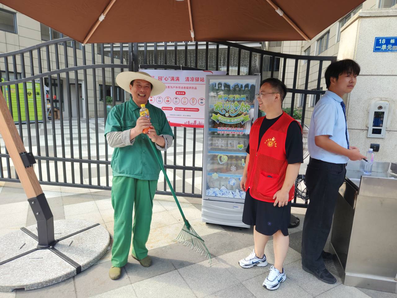 “这是免费给户外劳动者提供的。”在刚搬到“园”心满满驿站的“爱心冰柜”旁,环卫工人老李从“爱心冰柜”拿出一瓶冰饮解渴,“很爽,社区真是有心了”。