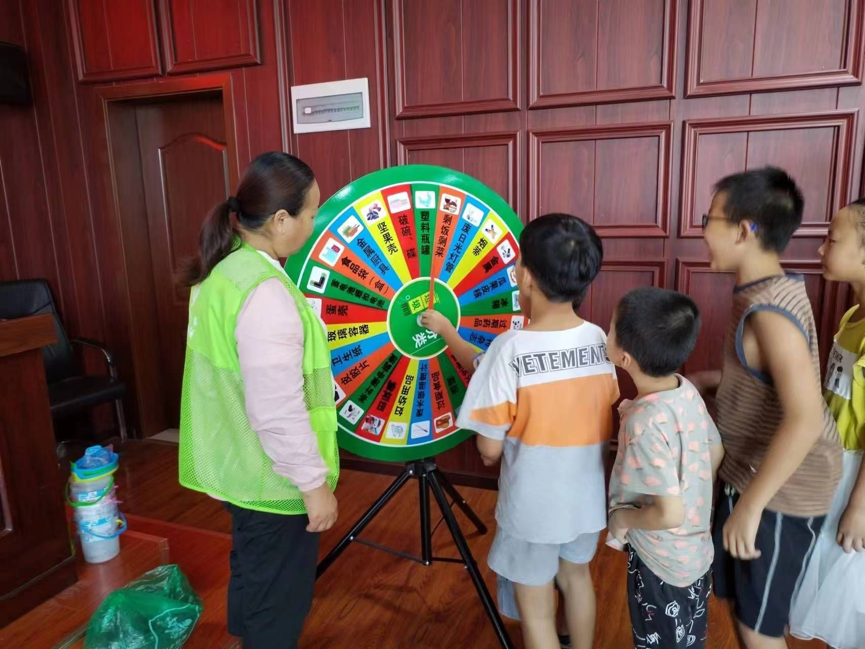 活动中,湘口街道垃圾分类专班指导员耐心讲解了垃圾分类知识,发放垃圾分类宣传折页。活动现场还设置垃圾分类投沙包、转盘等趣味游戏,让孩子们在轻松愉快的氛围里接受垃圾分类知识,了解垃圾分类技能。