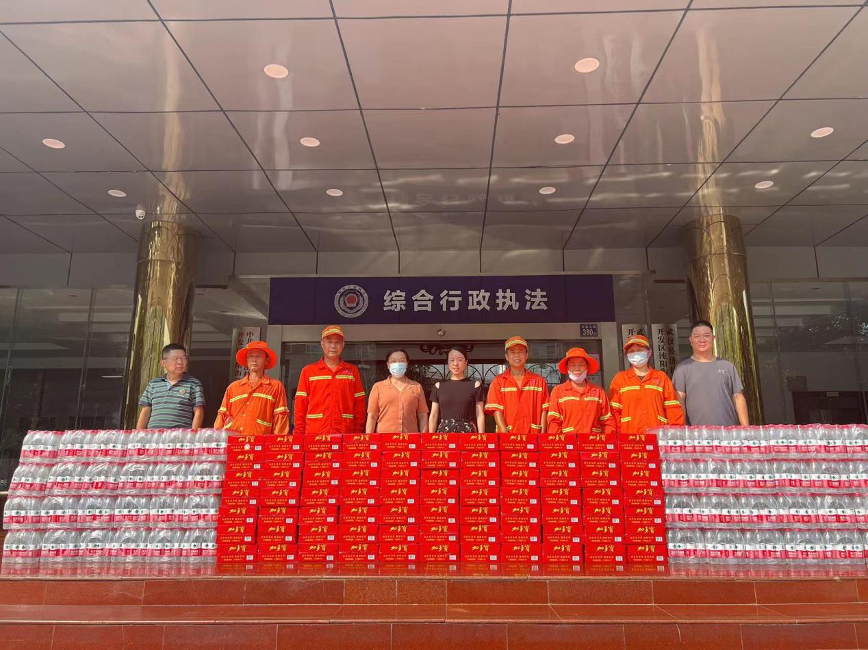车谷融媒8月17日讯 8月16日,沌阳街工会为坚守一线的环卫工人们送去清凉饮品,带去组织关爱。