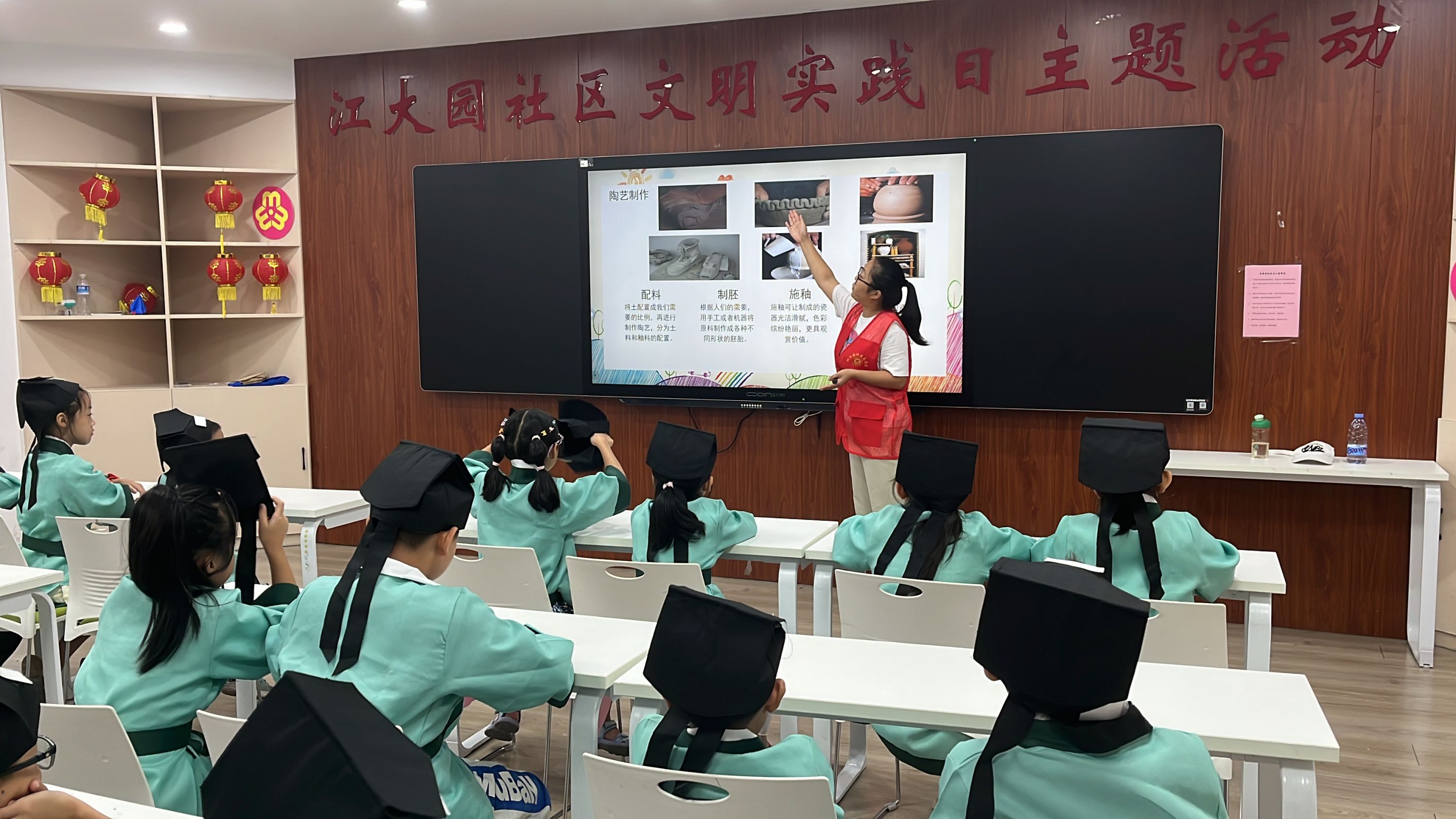 活动中,志愿者为孩子们科普陶艺历史和制作技巧,耐心细致地讲解制陶步骤和基本要领。
