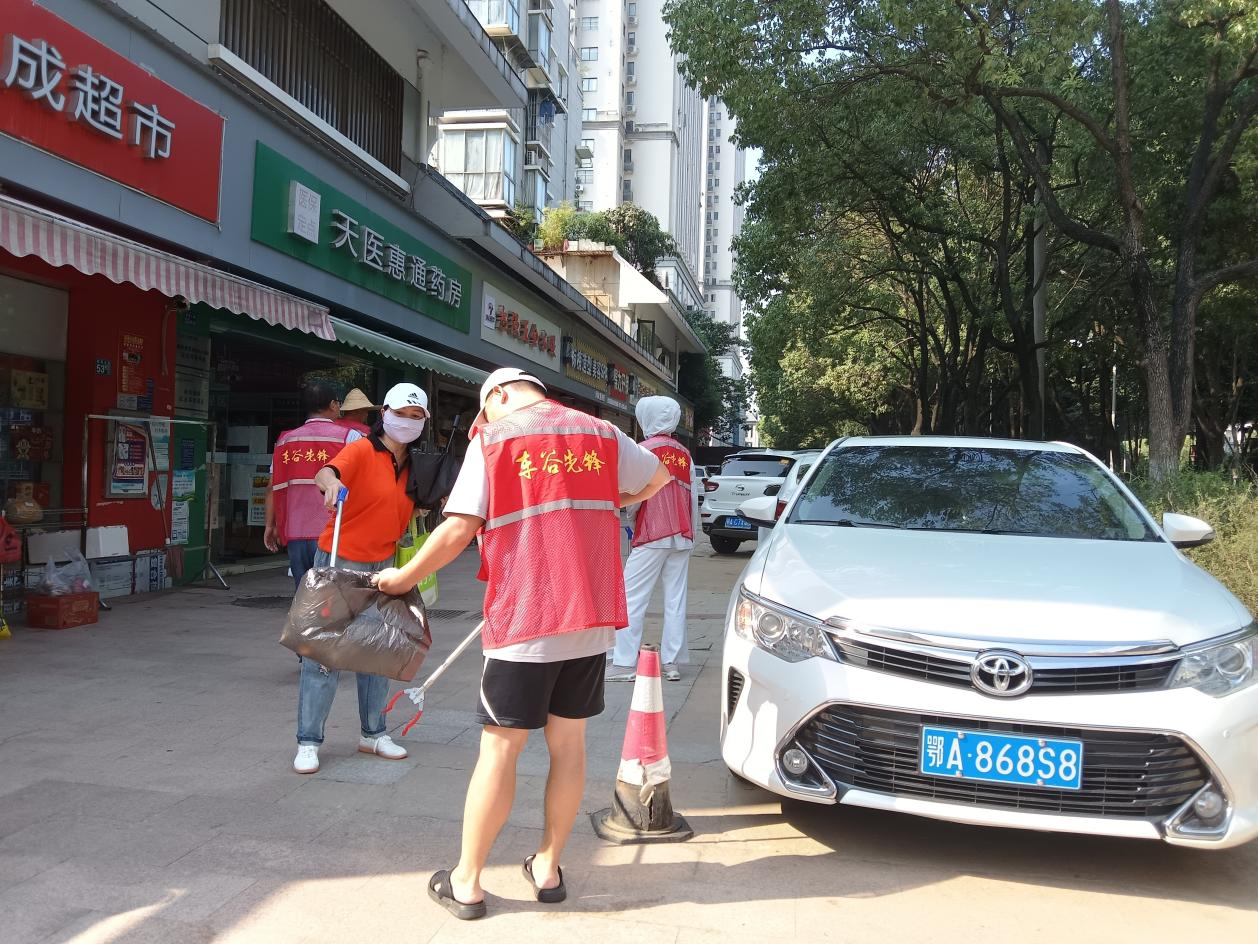 活动中,志愿者们顶着38度的高温,活跃在辖区的各个角落,她们分工明确,有的进入楼道对居民楼内的小广告进行集中铲除,有的拿着铁锹、扫把、夹子、撮箕等工具在小区的公共区域,捡拾烟头和草丛中的塑料瓶和白色垃圾。