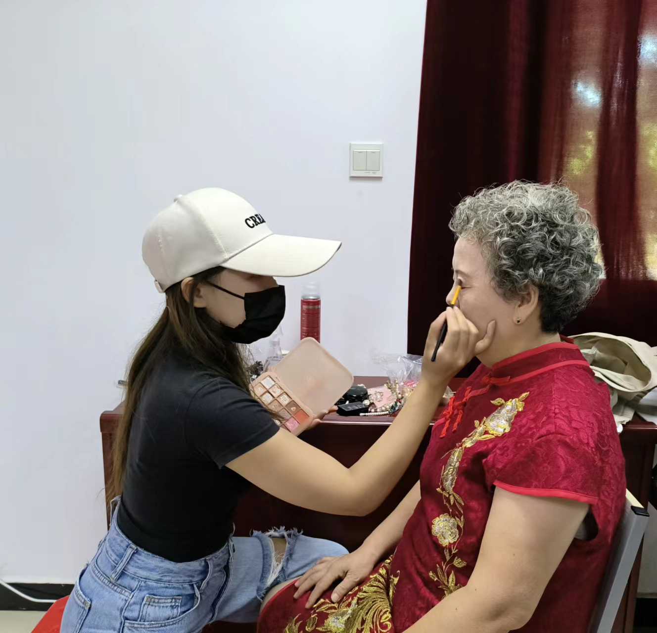 活动现场,阿姨们挑选心仪的婚纱或旗袍,叔叔们根据阿姨们的穿着搭配西服或中山装。“我们当年拍照哪有这些,女孩子就扎两根小辫子,没想到现在还能跟年轻人一样拍婚纱照,真是太好了!”等待拍摄的曹阿姨开心地对社工说道。换好衣服的老人依次化上了精致的妆容,以最佳的精神面貌进行拍摄。