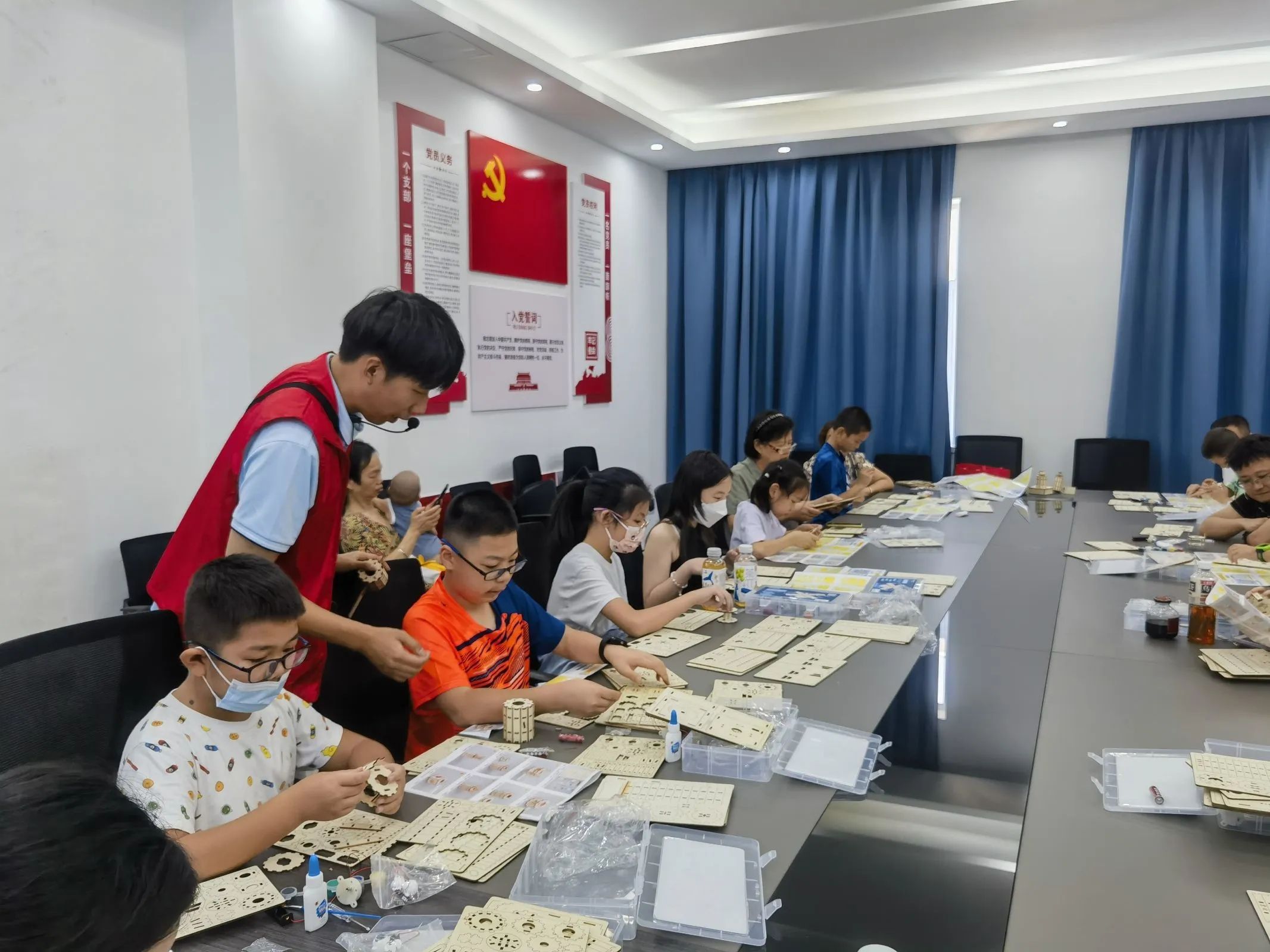 社工向孩子们科普了关于中国空间站的知识,通过和孩子们的互动,进一步加深青少年对航天知识的掌握。孩子们通过动手实践、边学边玩,在制作模型的过程中感受航天科技的魅力。
