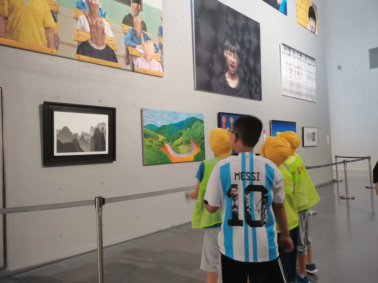 孩子和家长们在各展品前驻足观看,交流参观感悟。通过参观展览,孩子们感受到艺术与时代的互动和共鸣,在艺术的沁润中接受美育滋养。