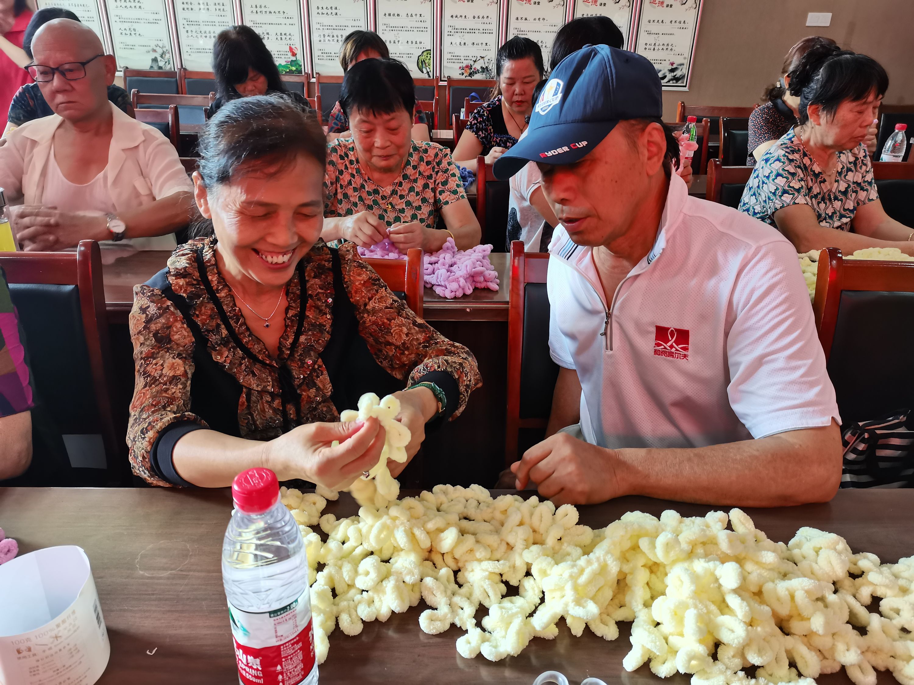 手工编制环节,在社工和志愿者的引导下,大家认真编织手提包。叔叔们在一旁穿针引线,为阿姨们打下手。大家轻声交流,相互帮助指导,在手工制作过程中重温一起走过的那些美好岁月。