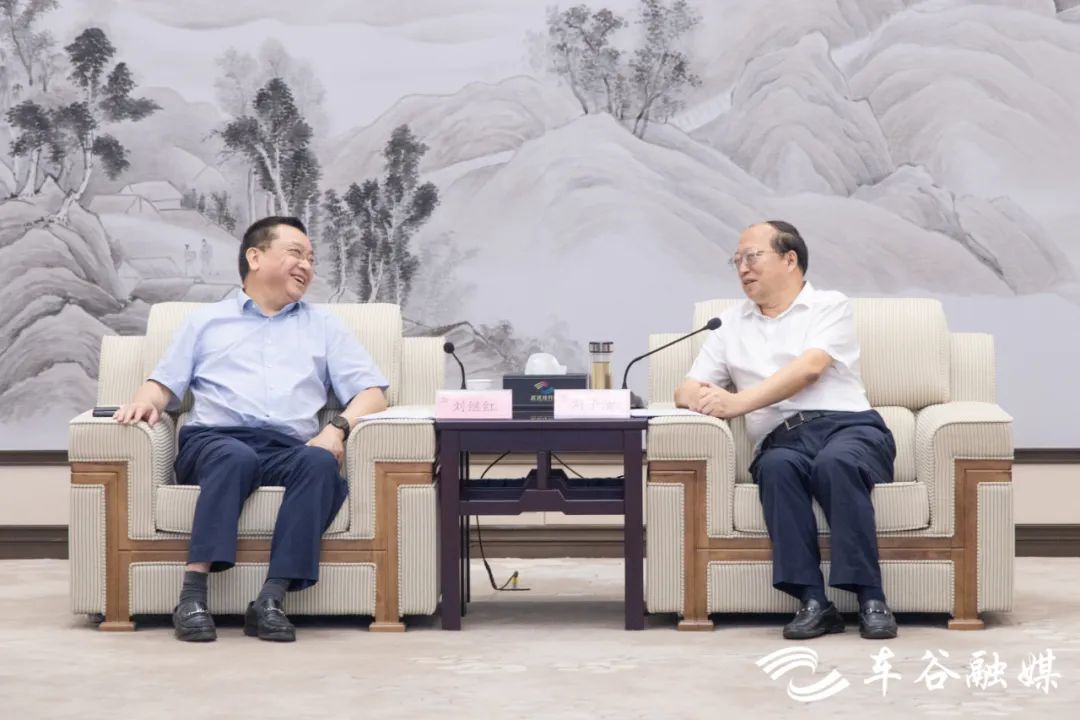 车谷融媒8月25日讯 8月25日,同济医院院长刘继红到访武汉经开区。市委常委、武汉经开区工委书记刘子清,工委副书记、管委会主任唐超与刘继红一行座谈交流。
