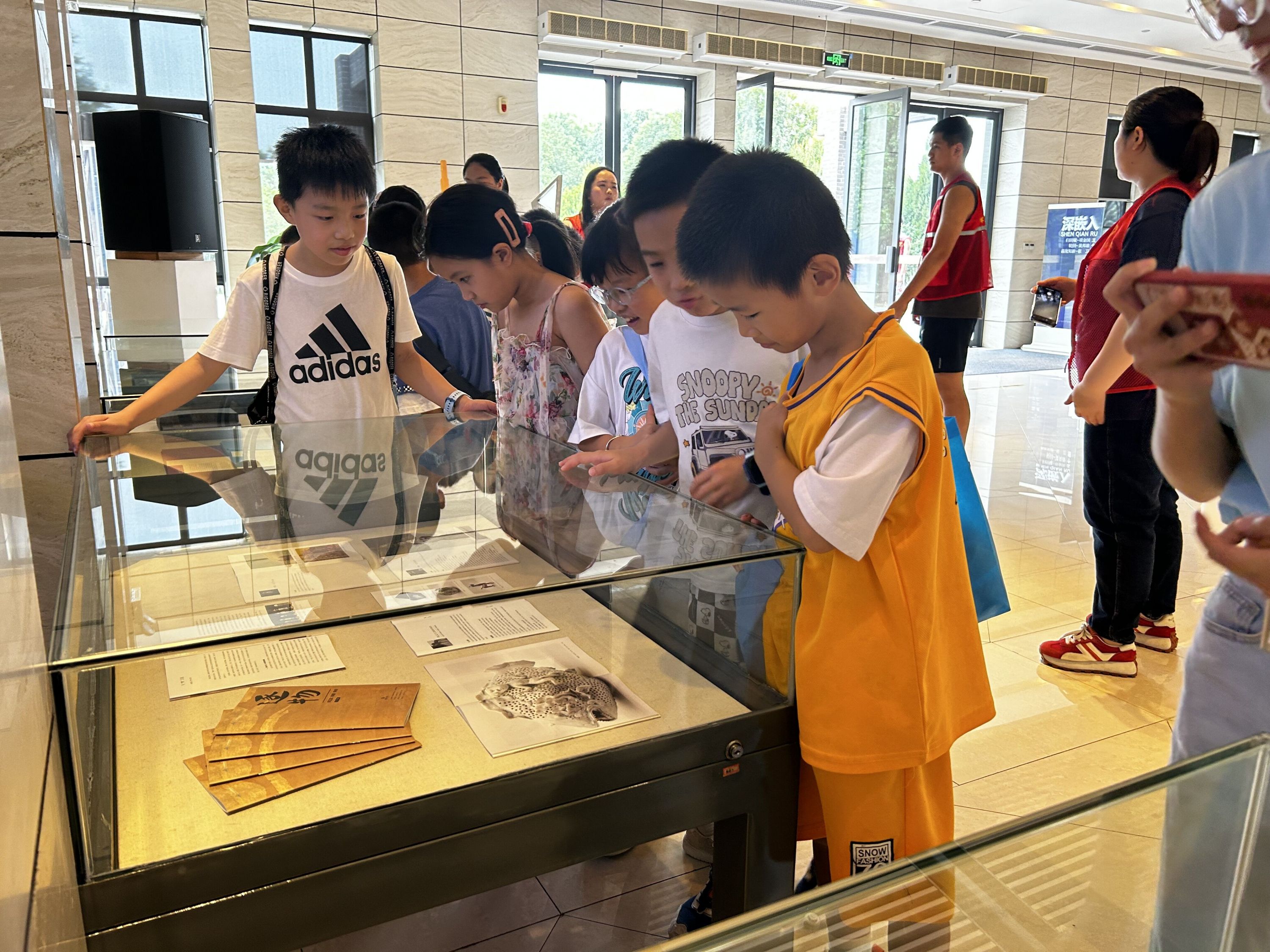 活动的首站是汤湖美术馆,场馆中或浪漫或具象或抽象的艺术作品,吸引了不少小朋友驻足观看。