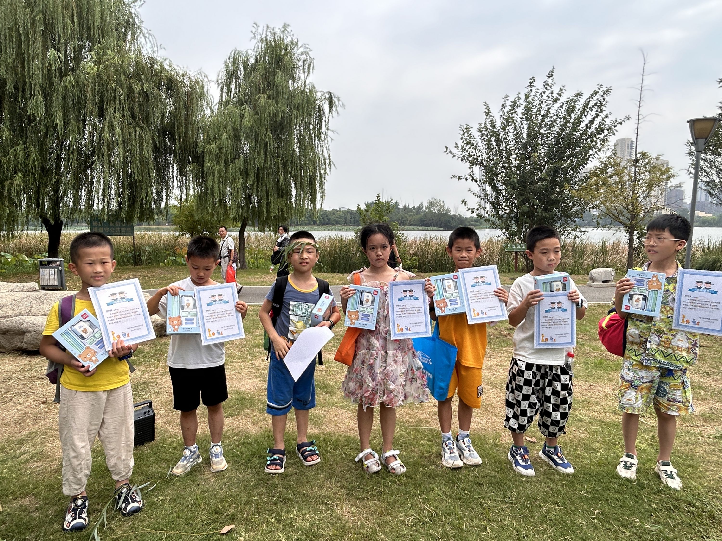汤湖公园绿草如茵,湖光山色的美景让他们陶醉其中。在大自然的怀抱中,孩子们展开了各种互动游戏,尽情享受户外活动的乐趣。部分同学还带来了才艺表演,给大家带来了一份欢乐和惊喜。活动最后还为每个孩子颁发了结业证书及结业小礼品,鼓励他们继续努力学习,成为更优秀的自己。