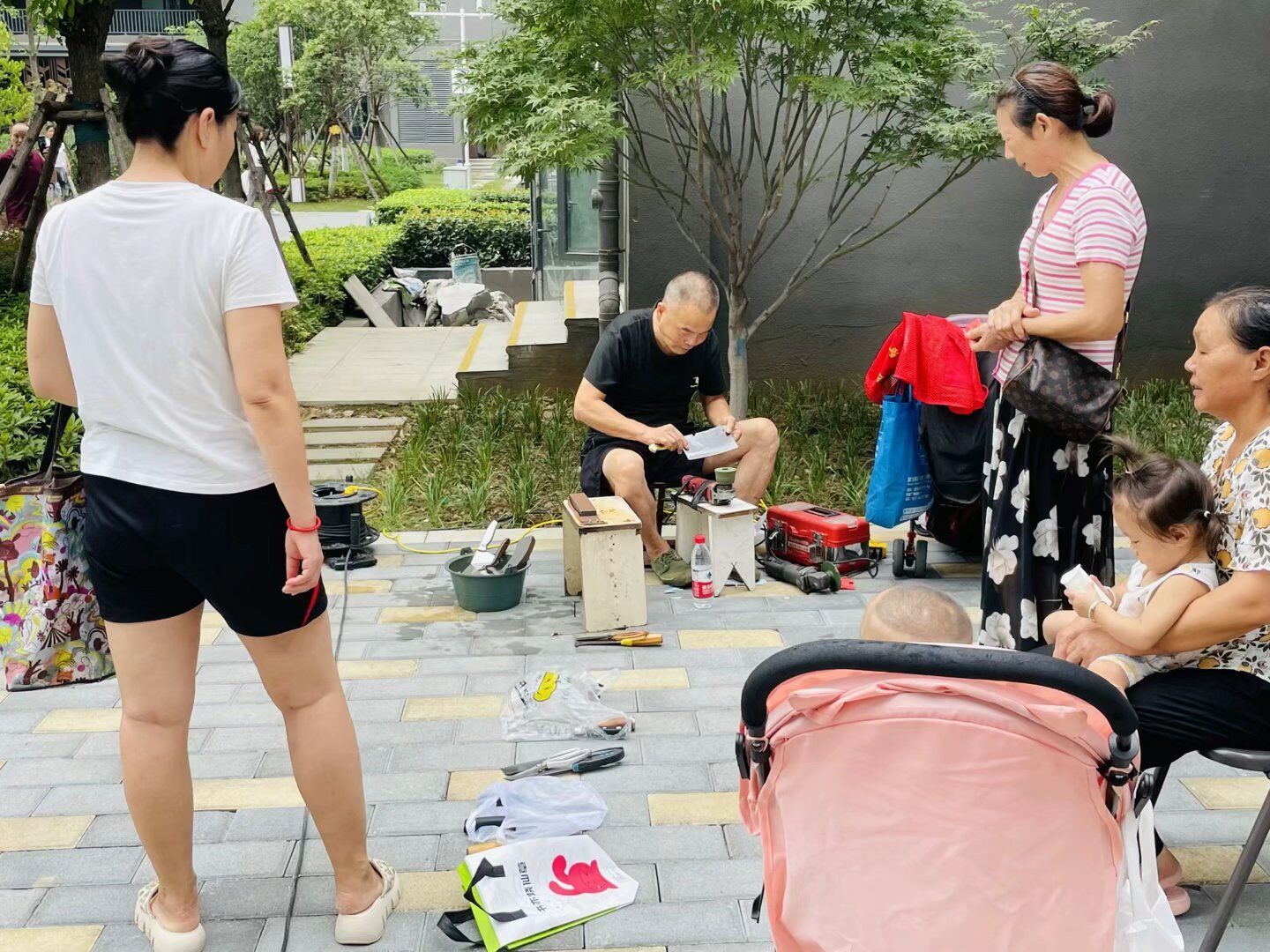 专业的便民志愿服务队伍为小区居民免费提供磨刀、修伞、修鞋、缝补衣服、理发5项服务。