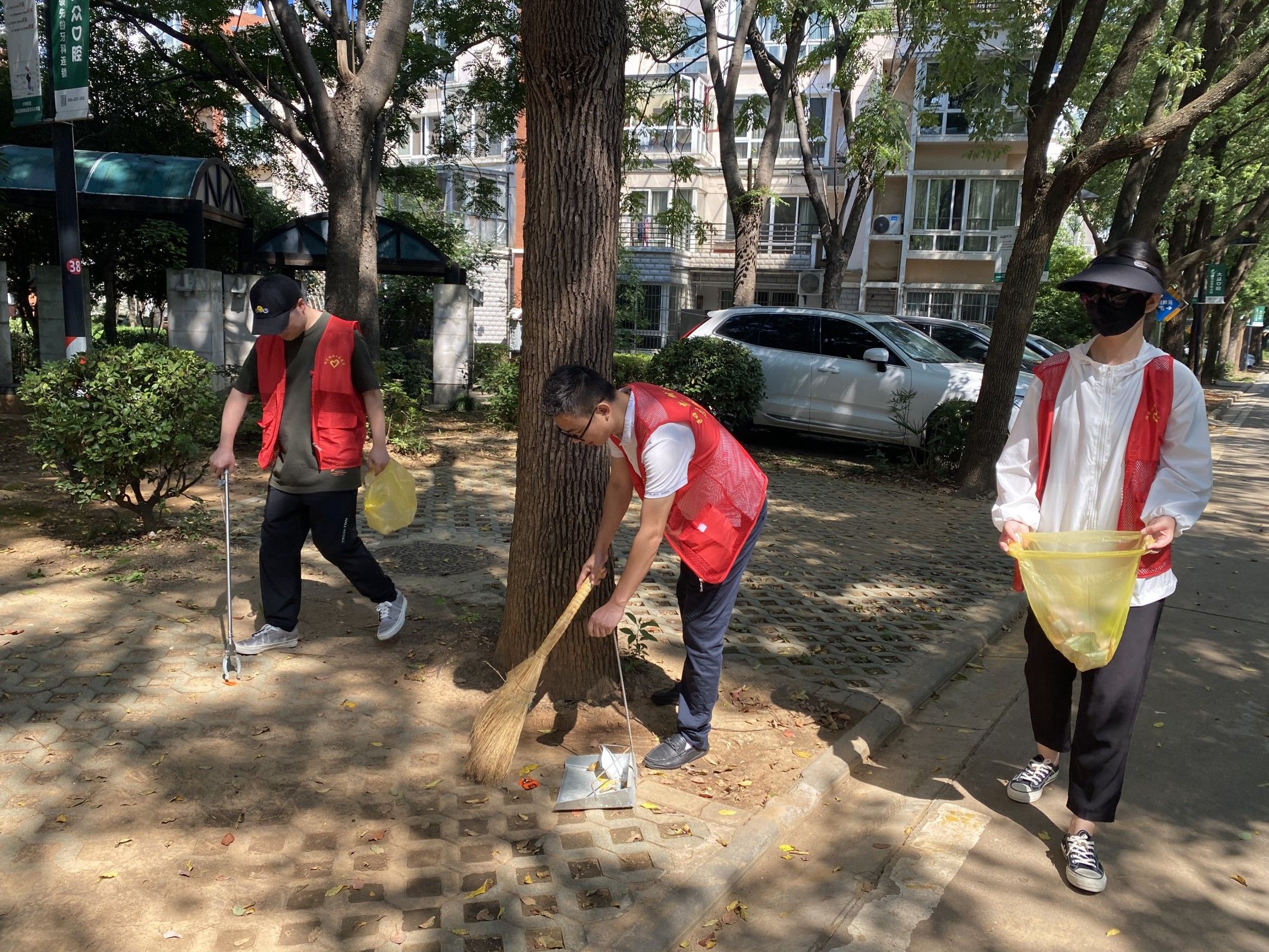 清扫路面垃圾,捡拾清除绿化带里的塑料袋、纸片、烟头、杂草……活动中,大家身穿统一的红马甲,手持扫帚、夹子、铲子等工具,对小区垃圾、杂草等进行清理和整理。志愿者们还主动向附近居民宣传垃圾分类小知识,发放环保垃圾袋,提醒大家养成良好的卫生习惯和环保意识,共同打造美丽家园。