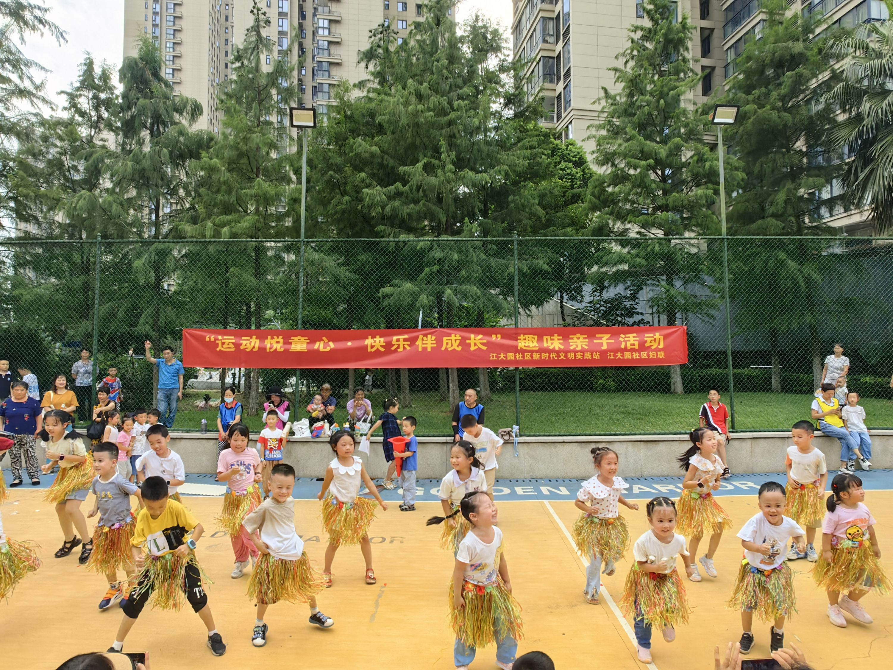 “加油!加油!”伴随着欢声笑语和此起彼伏的加油声,江大园社区“运动悦童心·快乐伴成长”趣味亲子活动会在小区篮球场火热开赛,来自社区56对亲子家庭欢聚一堂,乐享趣味运动。