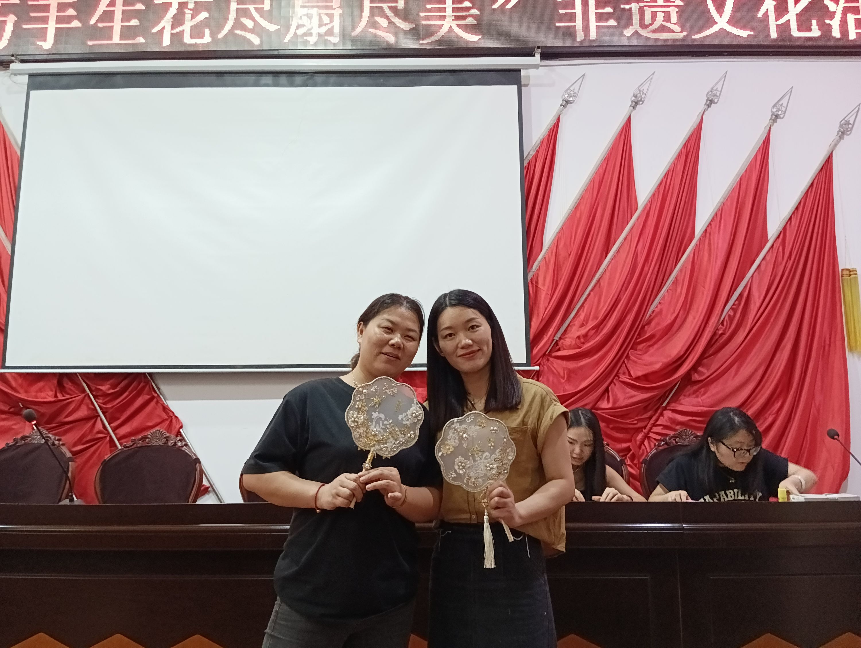 活动现场,志愿者老师向大家介绍了团扇的发展历史和制作方法。大家认真地选材、设计造型,从架势、布局到色彩搭配……大家相互帮助,共同探讨,充分发挥自己的创意和技能,细细构图、精心粘贴。很快,一颗颗漂亮的珍珠和金闪闪的配饰一一点缀在素白的扇面上,原本空空如也的团扇瞬间变得“花团锦簇”。