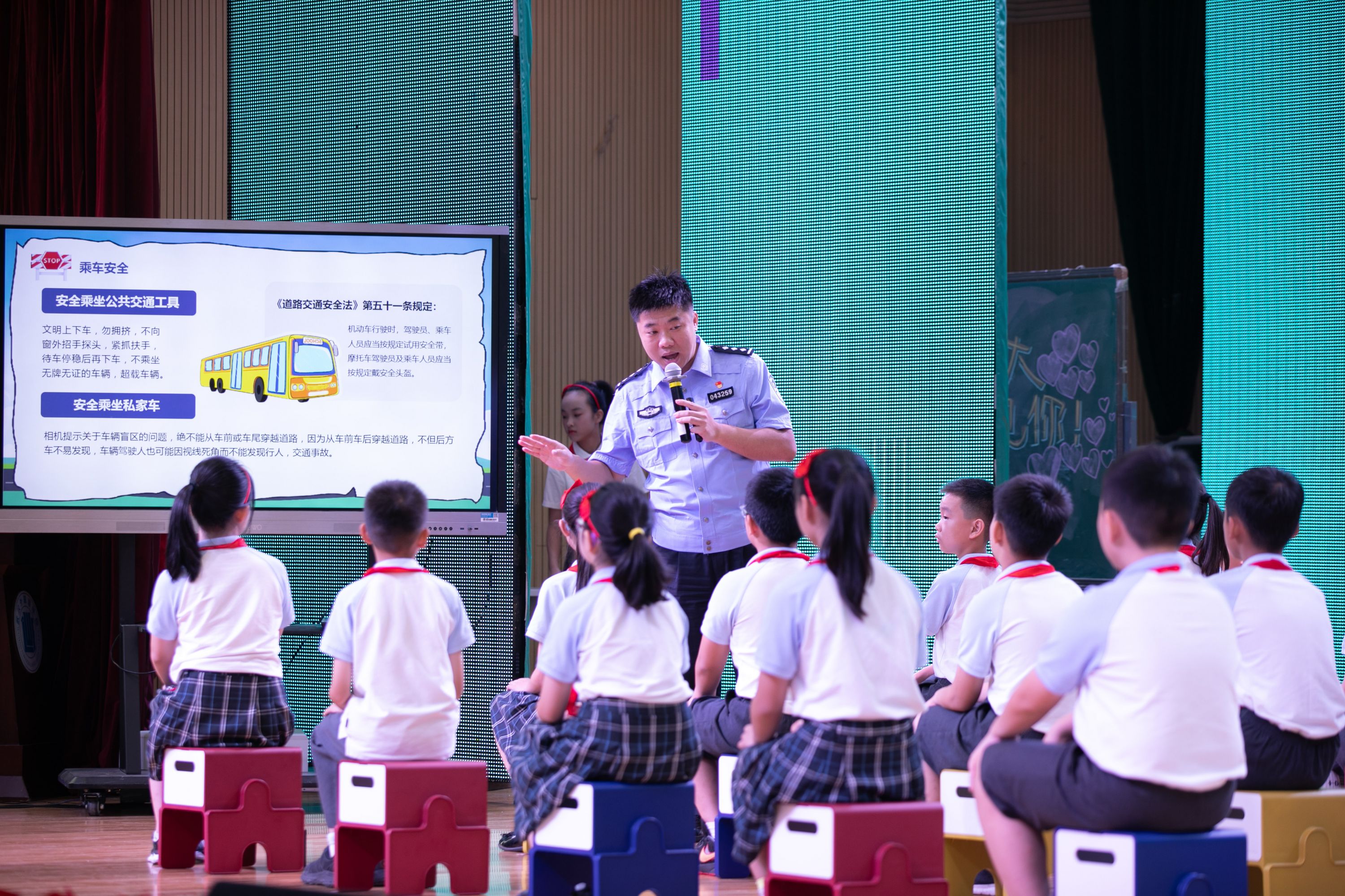 在当天的开学第一课上,民警从交通安全这个小切口入手,和全校的师生们一起“温故而知新”。