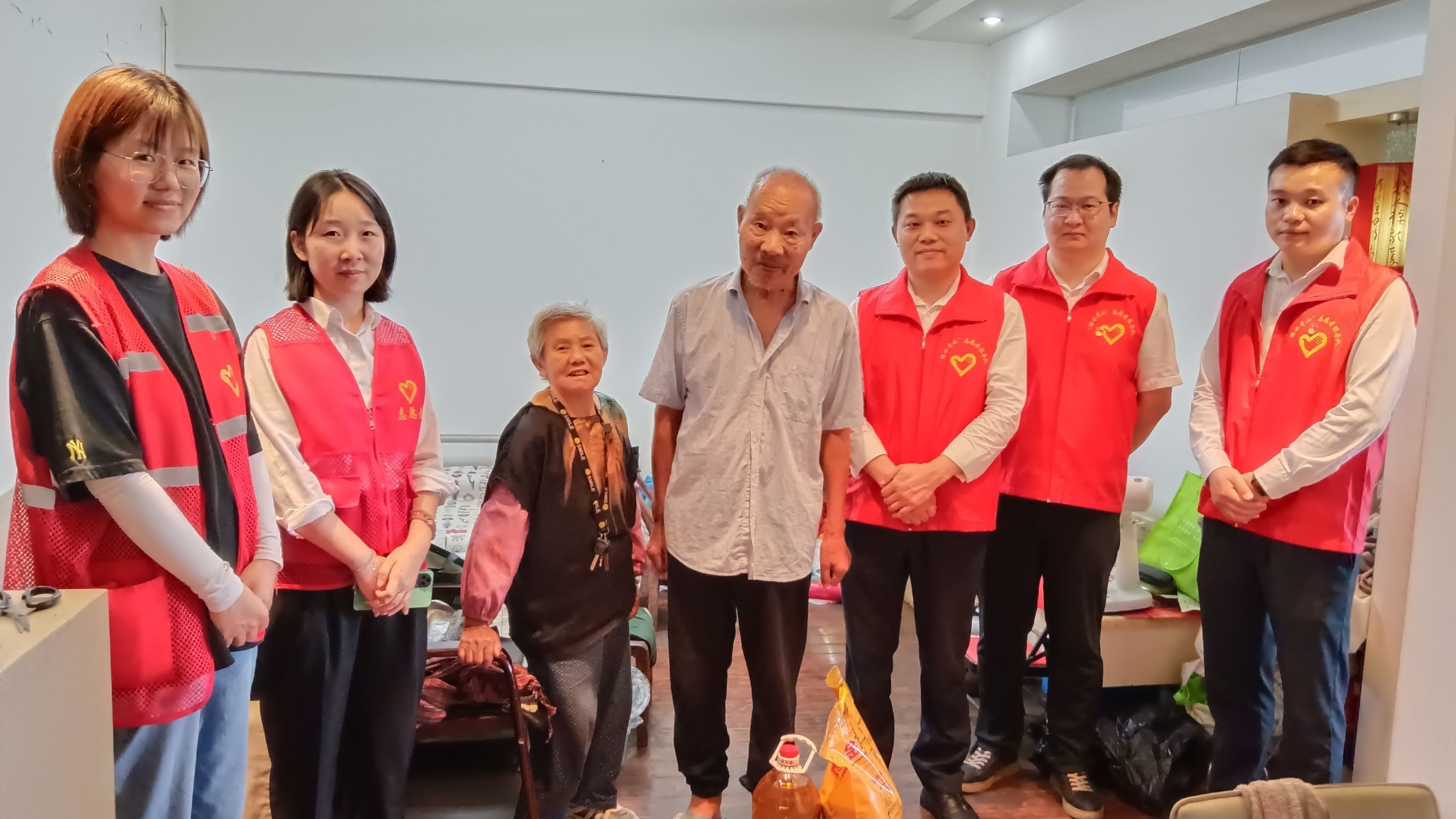 爱心小分队上门走访慰问了7家高龄空巢、独居老人,询问老人们的身体情况、生活需求,送上慰问物资。同时还开展清洁家园志愿服务活动,对小区进行清扫。
