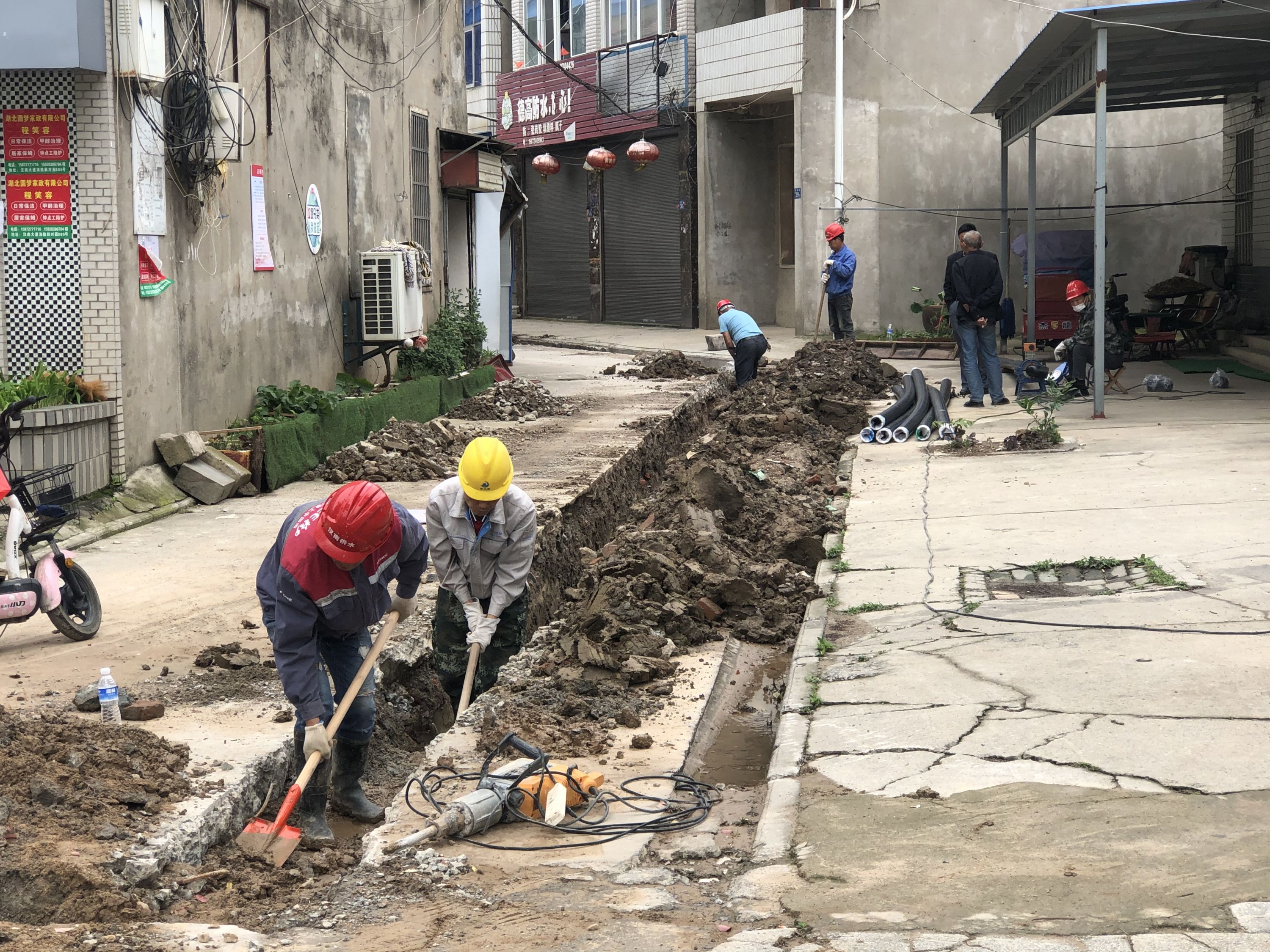 纱帽街道泥湖河社区何家畈属老旧村湾,因自建房屋自然水管网细且设计不合理,导致水压不足,居民日常用水困难。
