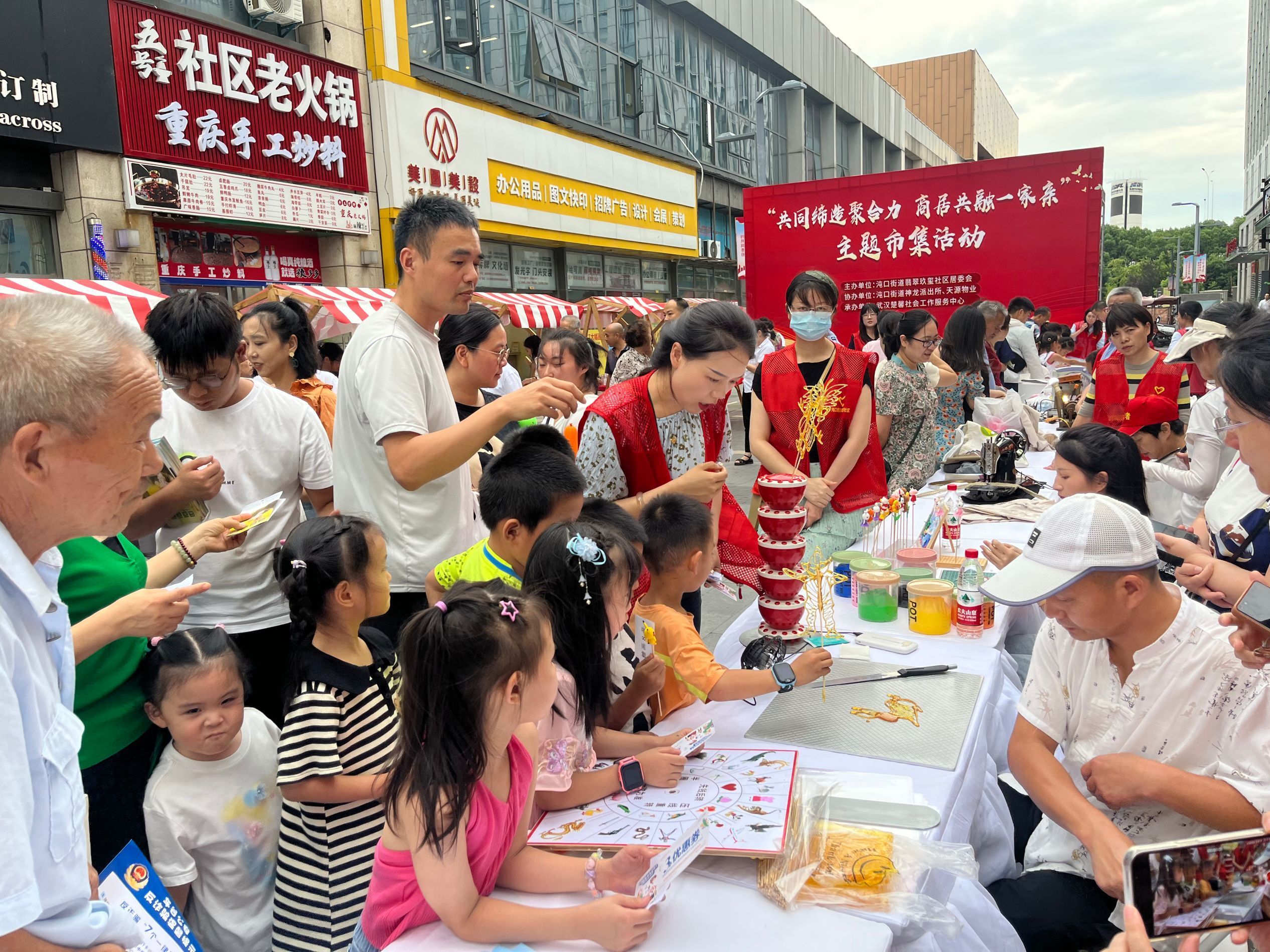车谷融媒9月5日讯 9月2日,沌口街道翡翠玖玺社区携手区党政办公室、区金融局,充分整合辖区资源,结合惠民服务、民俗体验、公益宣传、社商优惠联动等项目,共同举办“共同缔造聚合力 商居共融一家亲”主题市集活动,让居民享受到家门口的优质“微服务”。