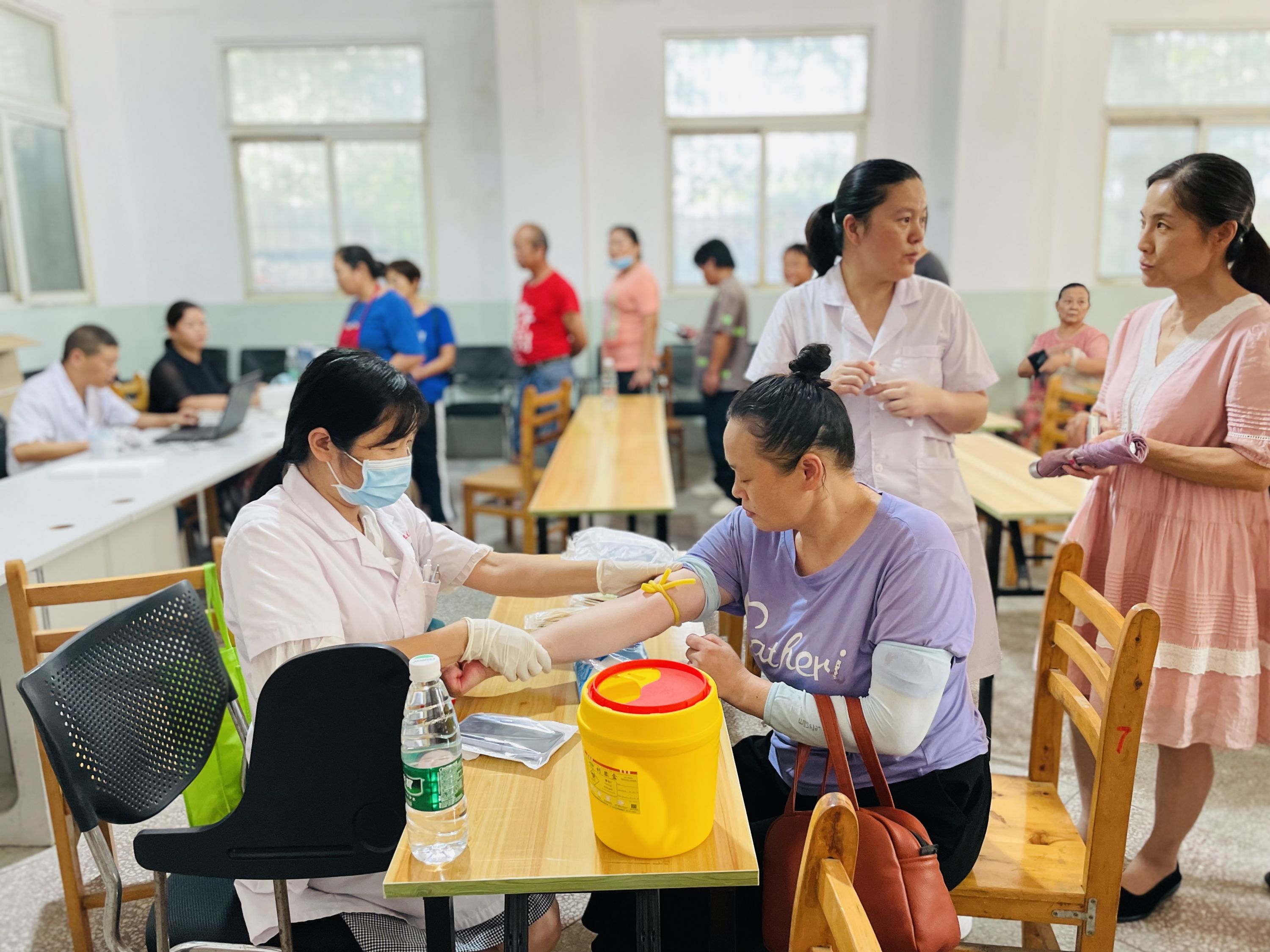 当天,医务人员与社区人员分工负责、各司其职,提醒体检人员保持秩序,做好登记,并引导进行抽血、采样、查体等。从排队登记到完成体检,不到两个小时,78名商铺从业者全部检查完毕。