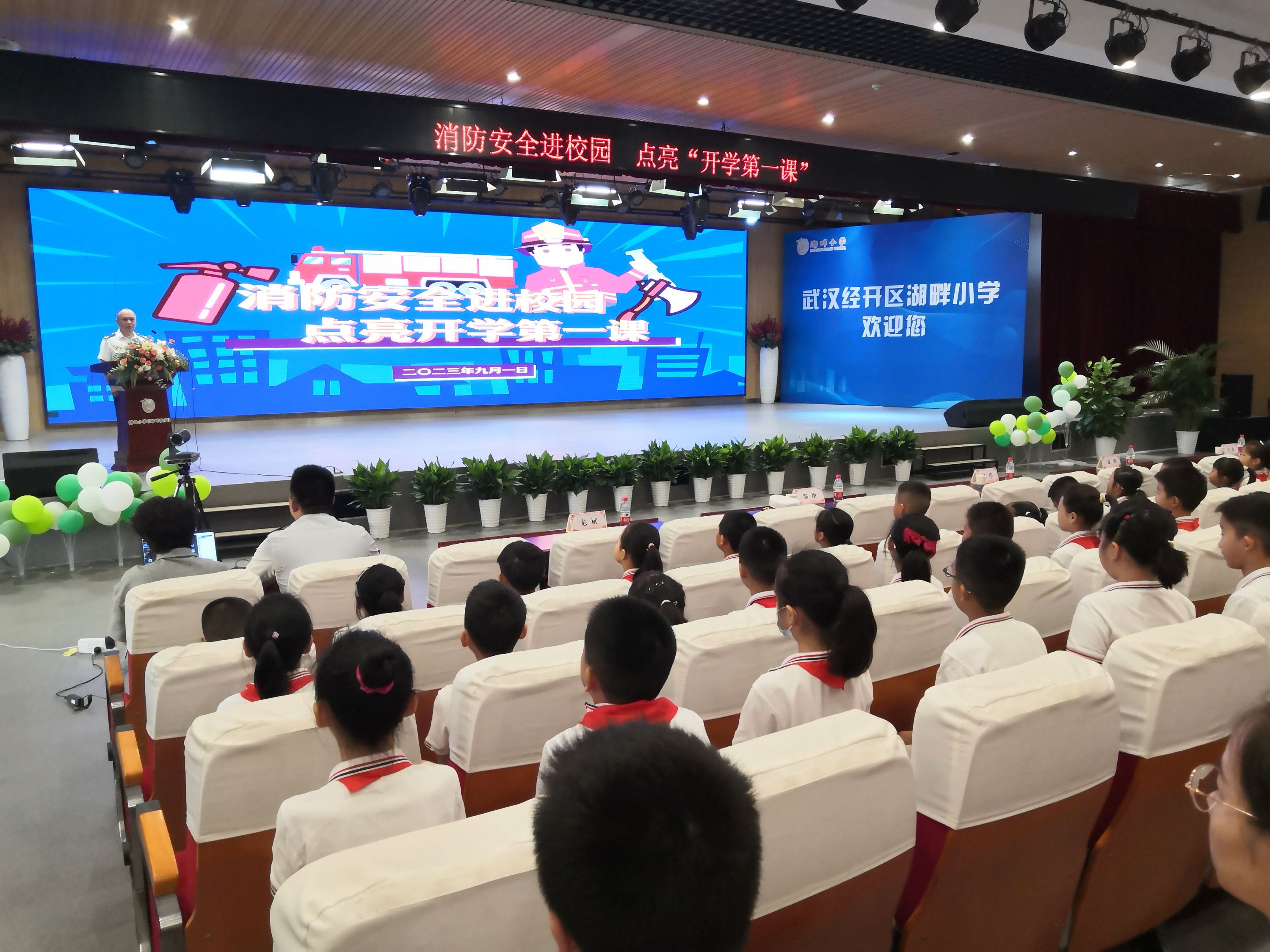 车谷融媒9月8日讯 近日,武汉经开区消防救援大队联合区教育局在湖畔小学为2000余名师生上好新学期消防安全“开学第一课”。