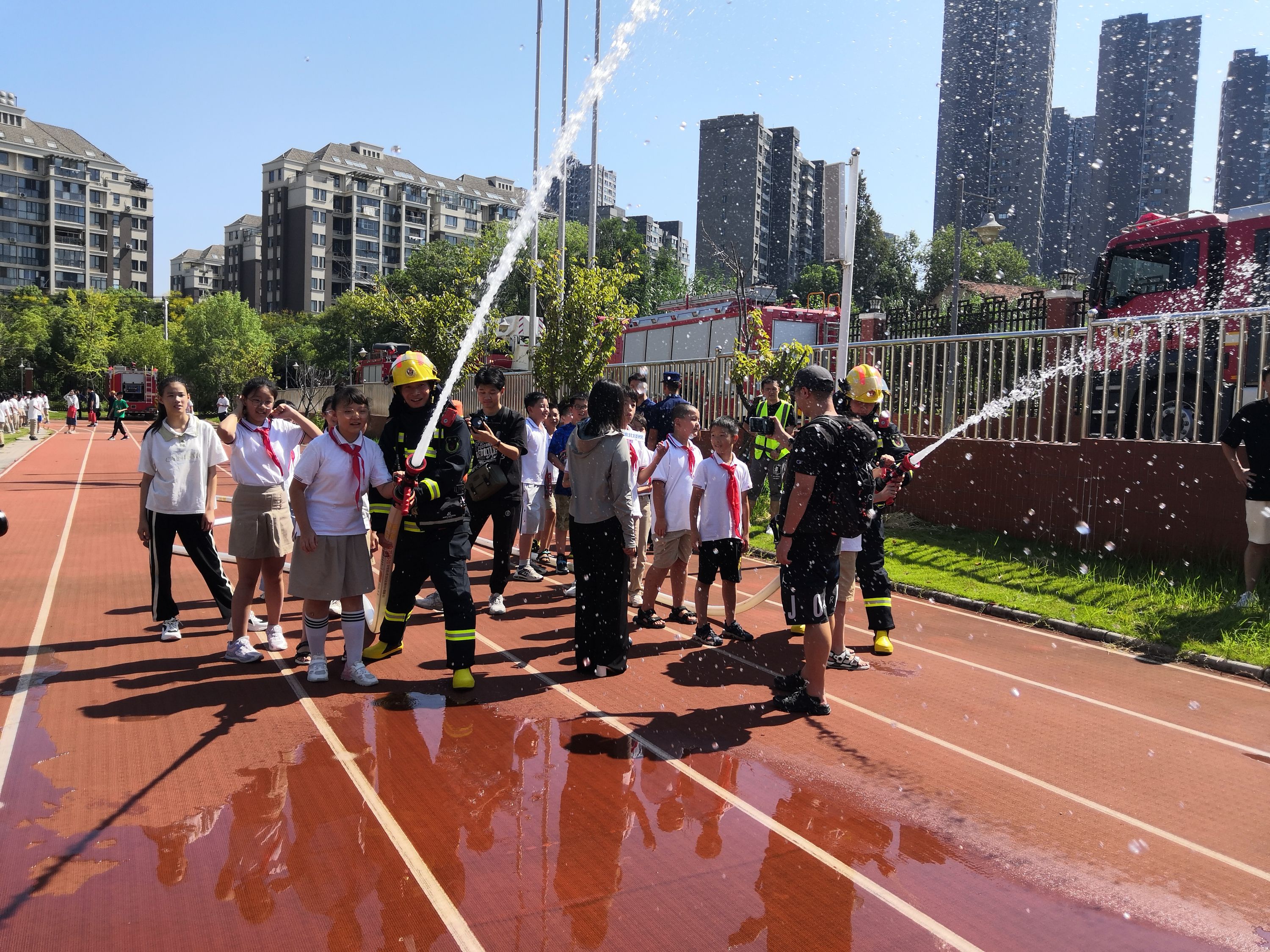 在消防实践体验环节,消防员给学生展示消防装备器材,组织学生代表逐一体验逃生帐篷、登高车,并进行穿戴战斗服、油盆灭火、水枪灭火等项目,让大家在轻松愉快的授课过程中既学到消防知识,又掌握了逃生自救的技能,加深对消防安全的理解和认识。
