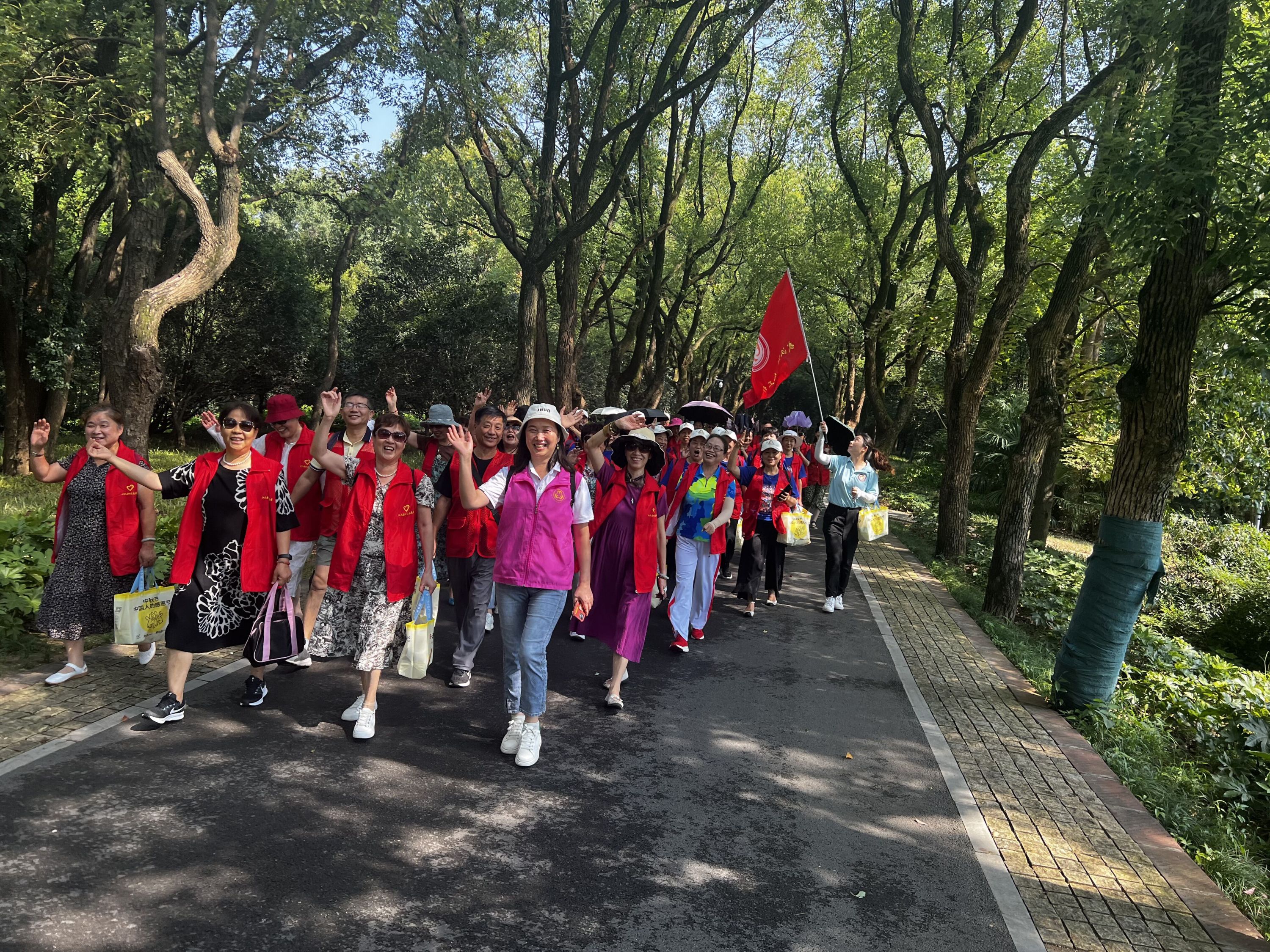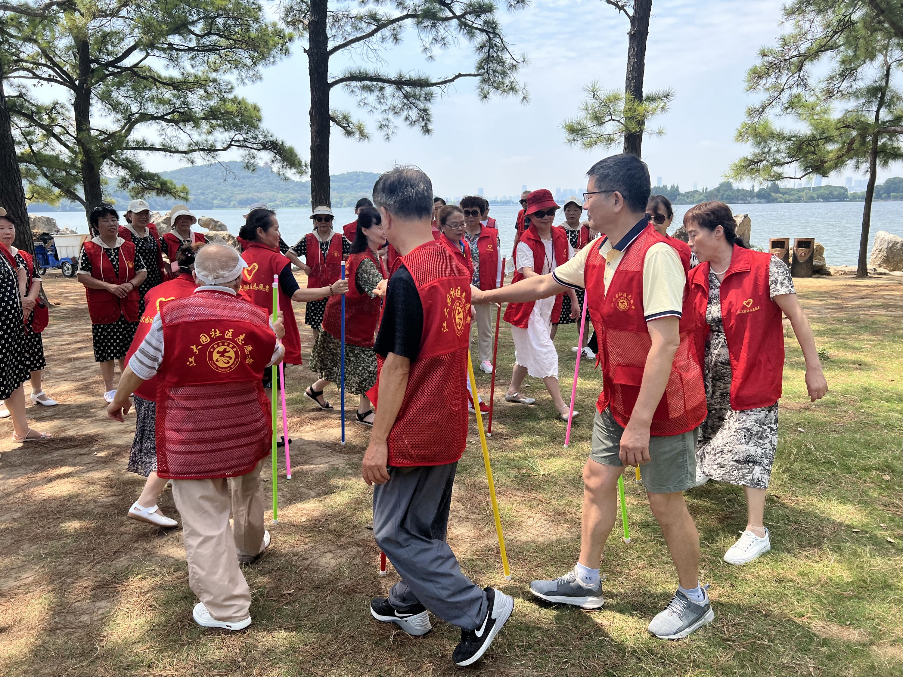 漫步至湖边的落雁亭休整,志愿者感叹道本次团建环节紧凑丰富,内容和形式都很精彩,并且玩得很开心,随即拿出音响,伴着音乐婀娜起舞。在“抓鸭子”“同心击鼓”“不倒森林”等趣味游戏环节,大家群策群力、齐心配合,共同达成目标,充分彰显了团队的凝聚力、向心力。