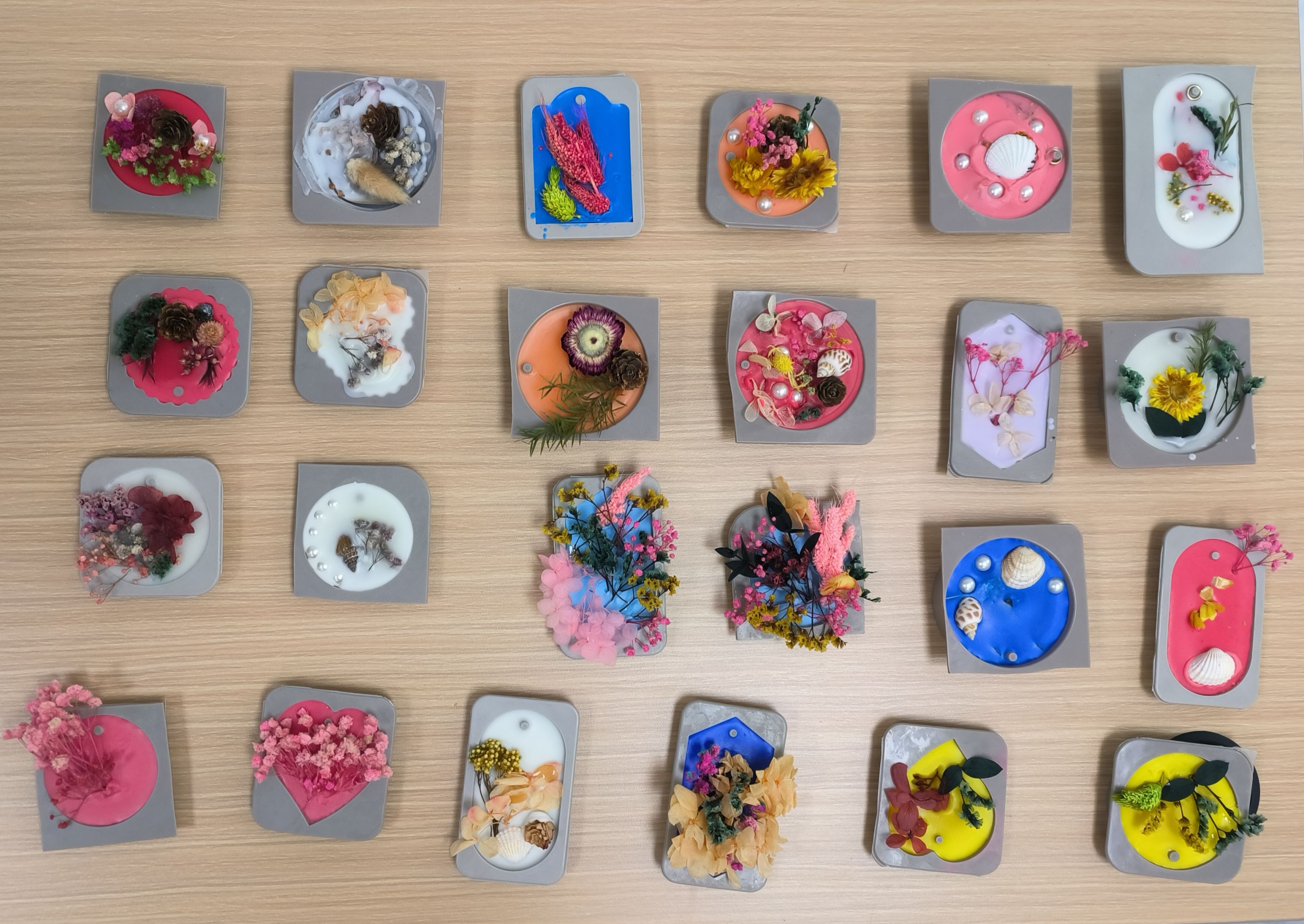 随着蜡液慢慢凝固,漂亮的香薰蜡片逐渐成型,整个活动现场弥漫着沁人的香气。大家拿着成品相互欣赏、赞美,一份份精致美观的香薰作品,在这绚烂美丽的季节,装点出大家心中的无限美好。