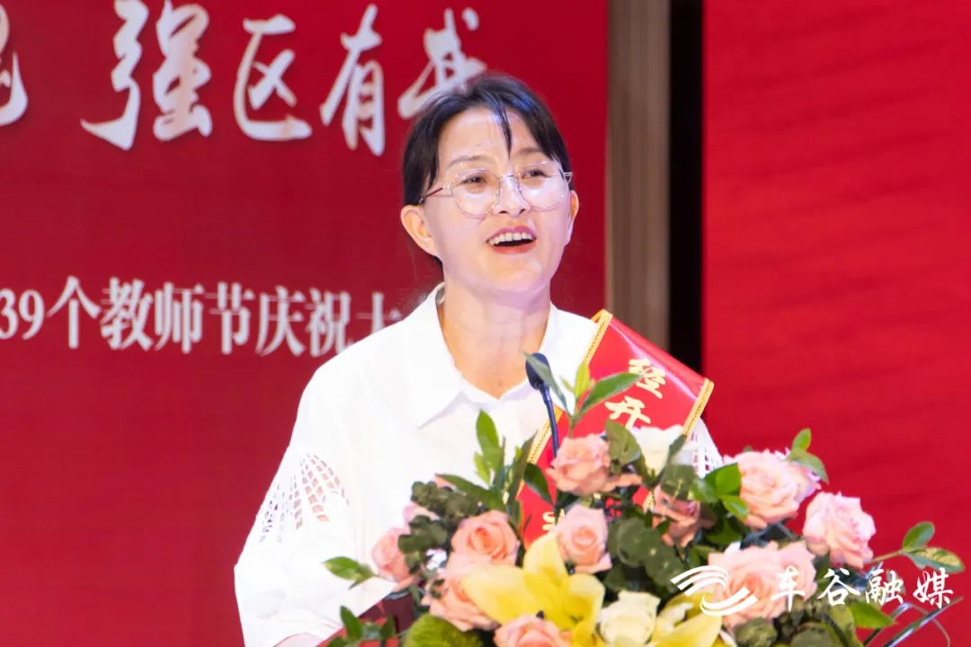 区领导张燕萍代表工委、管委会对全区教育工作取得的新成绩、新发展给予充分肯定,勉励全区教育工作者加快教育领域改革,坚定实施名校战略,打造智慧教育高地,关心关爱教师群体,营造尊师重教浓厚氛围。全区教师要牢记习近平总书记提出的“四有”标准,不断提高知识水平和业务能力,以高尚的人格教育和影响学生,以渊博的知识启蒙学生,努力成为广大学生的良师益友,无愧于人民教师的光荣称号。