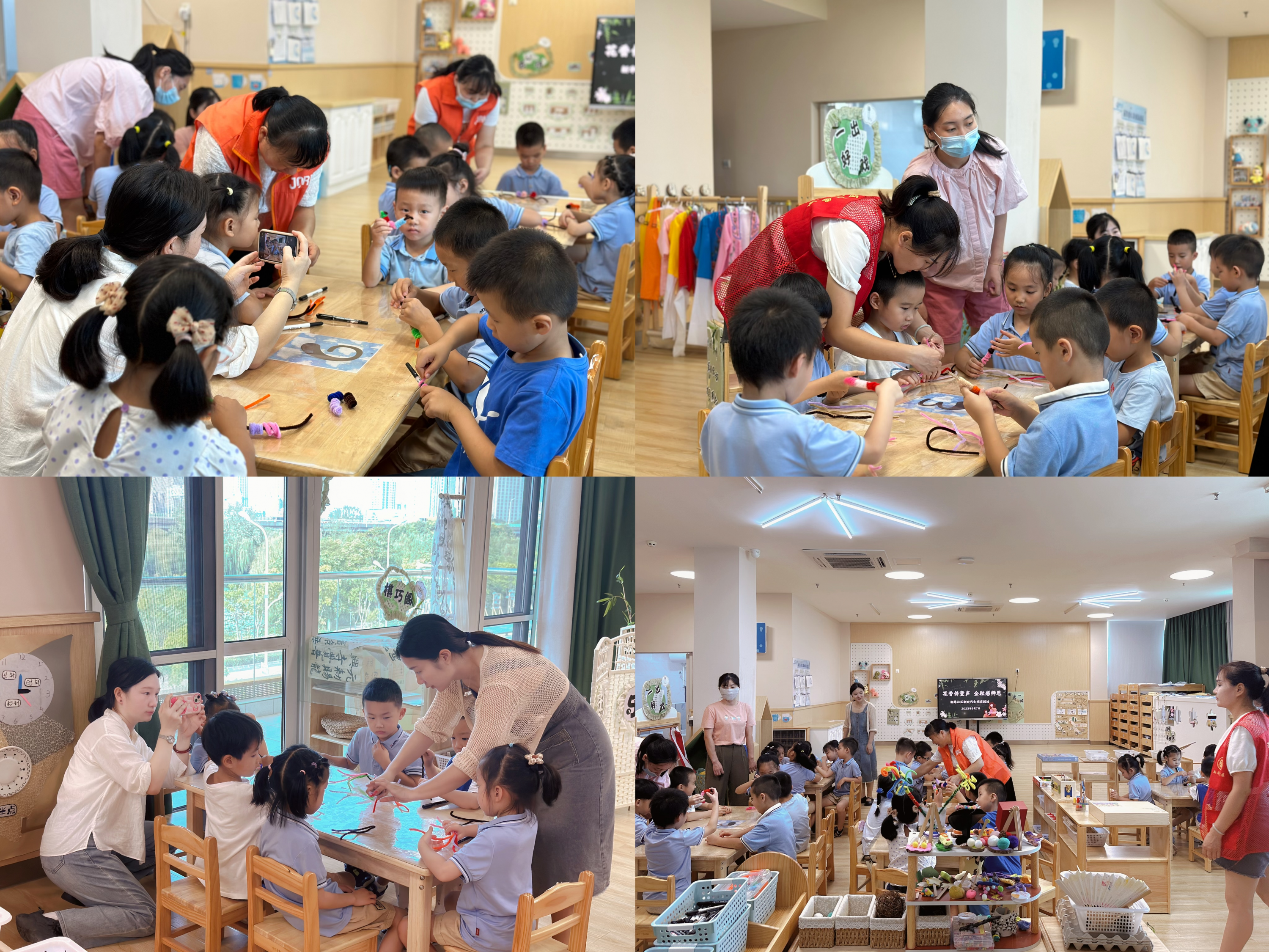 在手工DIY活动中,老师及社区志愿者带领小朋友使用“五彩扭扭棒”制作创意花束,五颜六色的扭扭棒在经过扭、压变成浪漫的向日葵花朵,表达了小朋友们对老师的崇高敬意和真诚的爱。在社区志愿者的细致讲解中,孩子们通过学习逐步树立了变废为宝的环保理念。