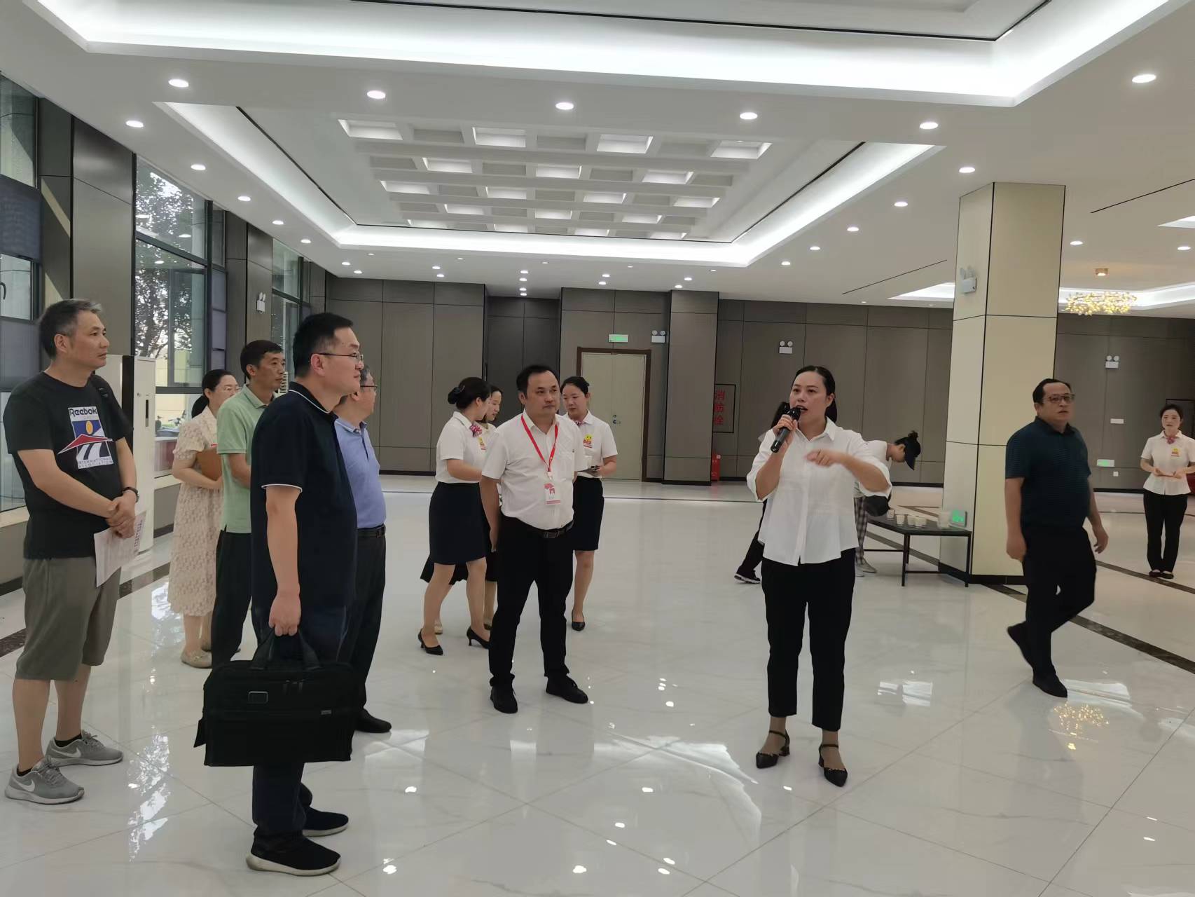在沌口馨苑小区,政协委员们查看社区物业办公服务大楼的运行情况。沌口馨苑小区是沌口六村村民拆迁还建小区,为满足居民举办红白喜事的需求,社区在物业办公服务大楼修建办酒服务大厅,同时选聘居民成立红白理事会,进行大厅的管理运行工作。