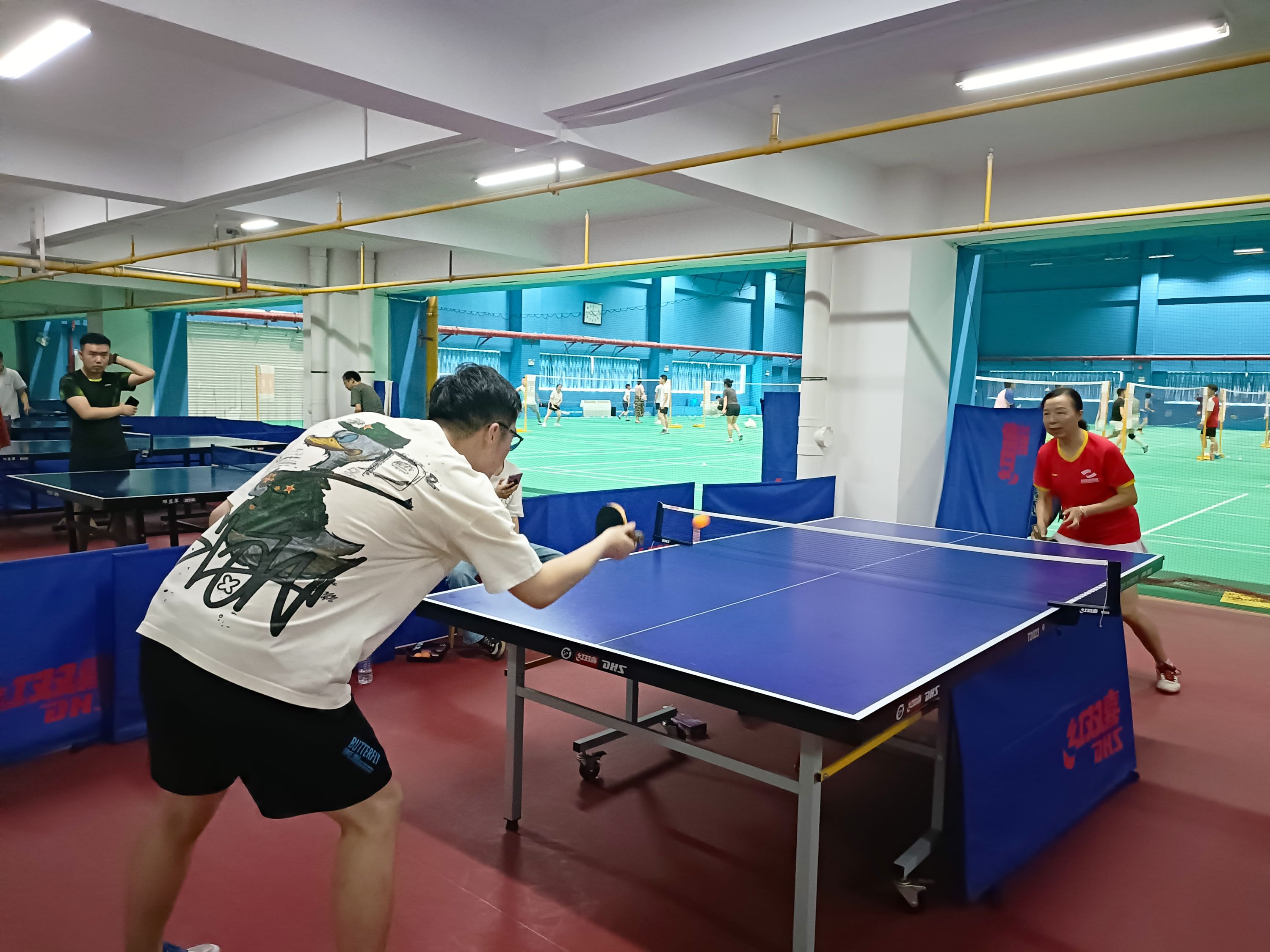 比赛开始后,参赛选手们你来我往,互不相让。横拍、竖拍、扣球……一个个精彩的场面不断在赛场上演,现场气氛激烈紧张,观赛选手们此起彼伏的掌声、欢呼声、加油声在球馆上空久久回荡。