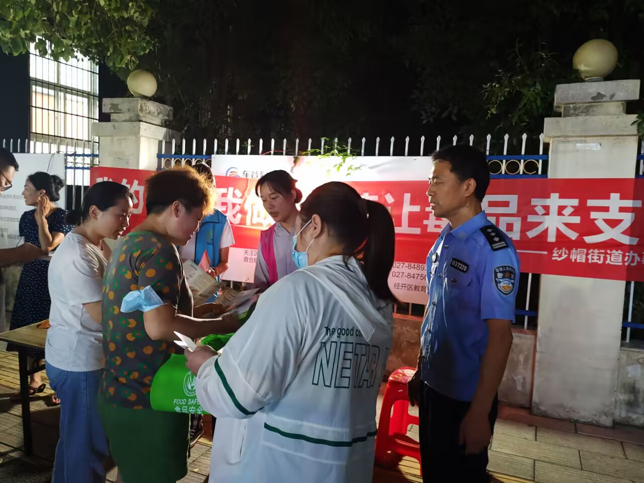 9月8日晚,纱帽街道绿苑路社区联合社区民警集中开展禁毒宣传教育活动,提高辖区群众识毒、防毒、拒毒的意识和能力,营造全民禁毒的良好氛围,共建“平安社区”。