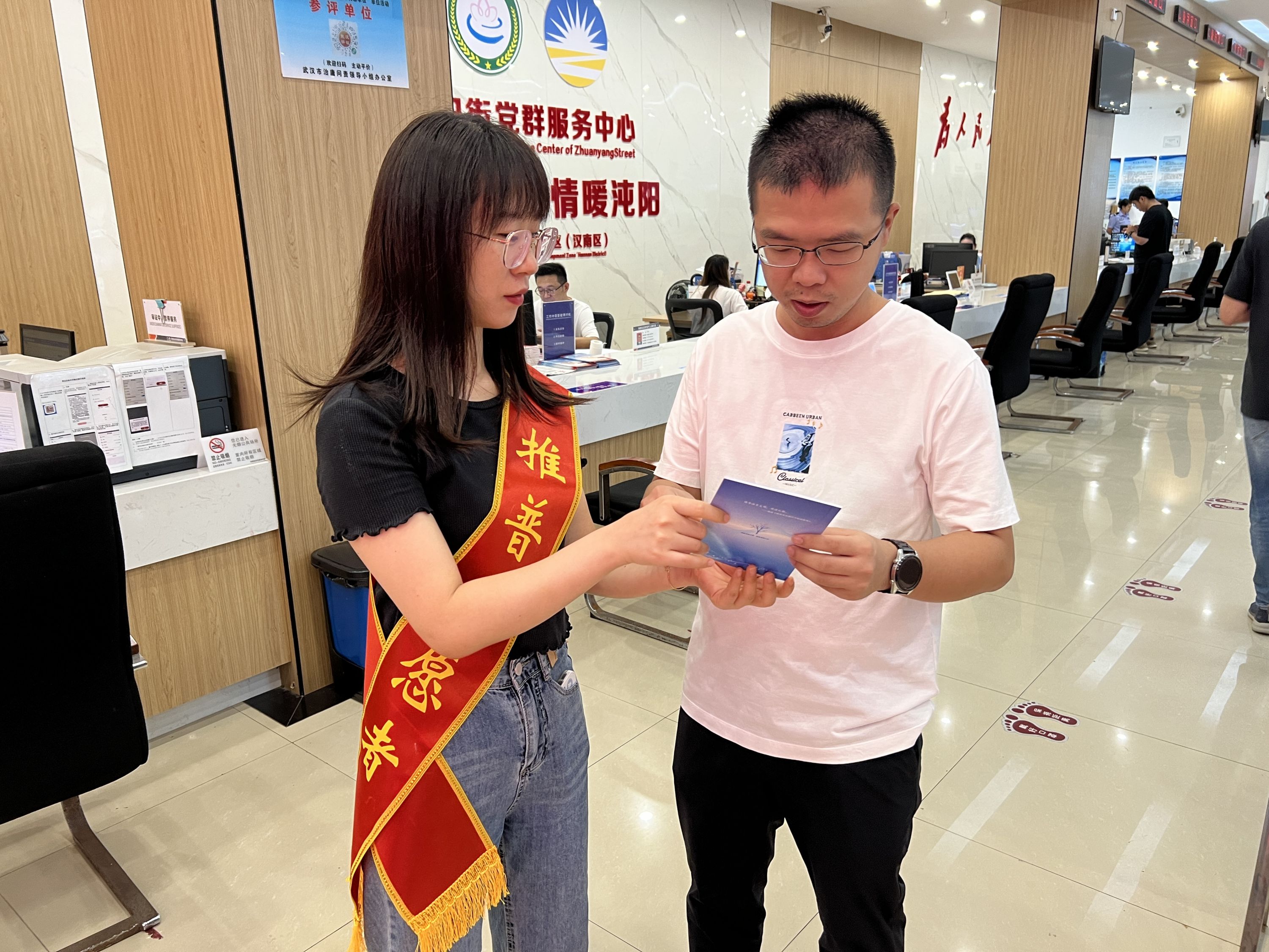 现场电子屏上滚动播放着“推广普通话 奋进新征程”的主题宣传画和口号,推普志愿者们则向前来办事的群众发放宣传手册,并积极宣传使用普通话和文明用语的重要性及必要性。