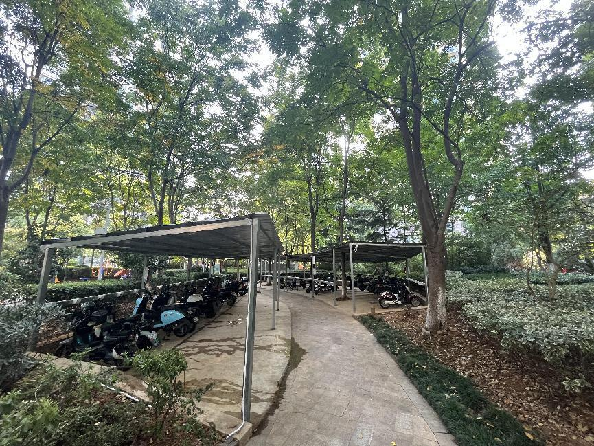 在建设过程中,小区业委会自筹项目资金,商讨制订项目施工方案,开展停车棚场地平整建设,明确维护管理责任等,历经月余,小区电动车棚和充电桩建设完成。
