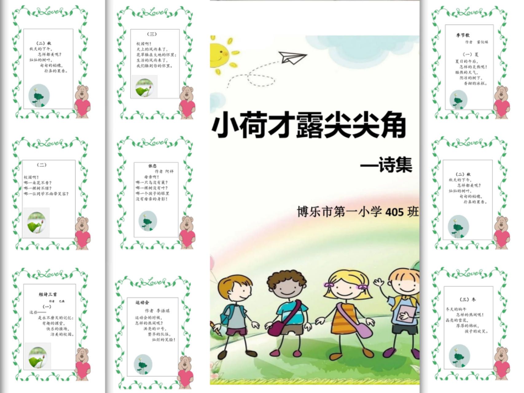 “学生们非常兴奋,因为精美的诗集里有他的名字,这种做法让学生们对写作更有兴趣了!”刘辉自豪地说,学生们看到自己的文章被印成铅字,小脸笑开了花。学校还成立了毛毛虫文学社,学生们都积极投稿,班上还有一个学生的诗歌被《博尔塔拉报》转载。