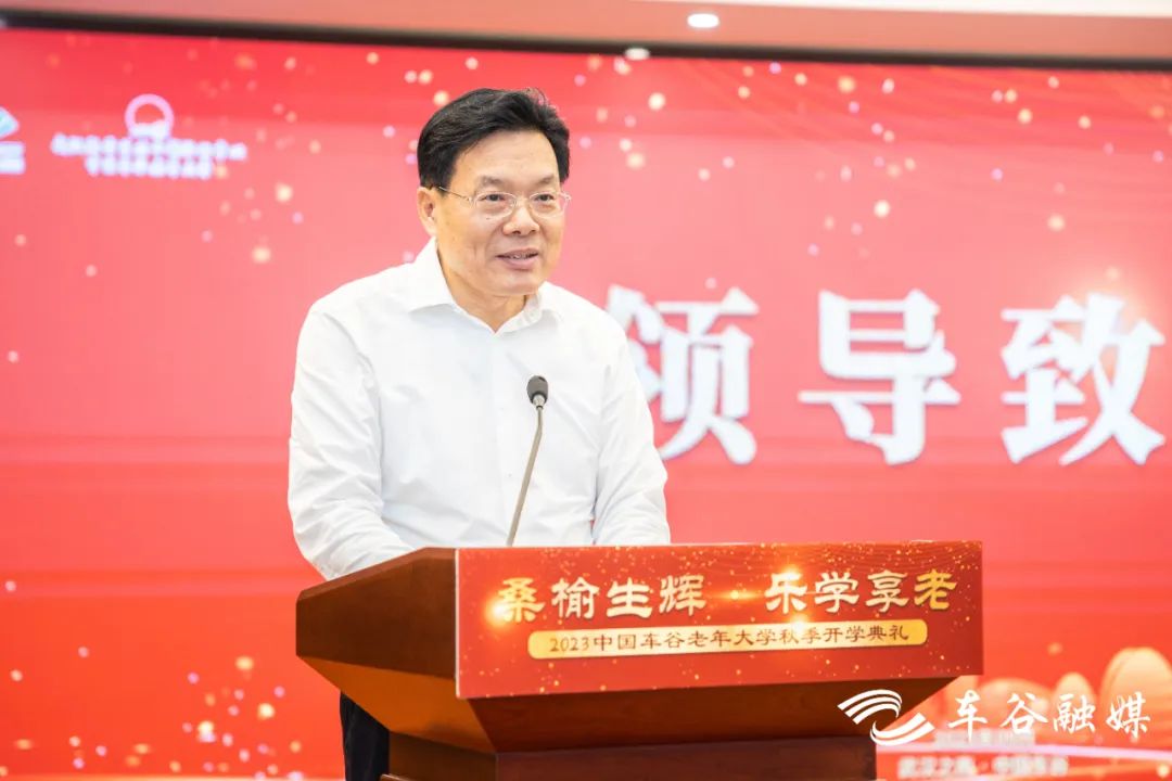 开学典礼上,市委组织部副部长、老干部局局长徐波表示,武汉经开区党工委贯彻落实党中央、省委、市委重大决策部署,将老干部工作和老年教育工作作为一项政治任务抓紧抓实,成效显著。希望经开区持之以恒创新办学模式,办好办活老年大学,使老年大学真正成为增长知识、发展友谊、陶冶情操、传承文明的地方。