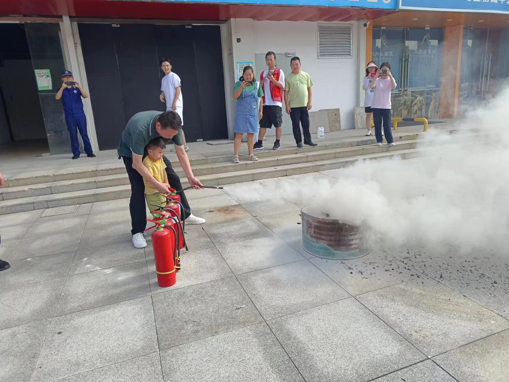 在演习实操环节,小朋友们借助灭火毯和干粉灭火器等设备模拟演习灭火,亲身体验更直观的了解灭火的方法,消防人员向幼儿园老师讲解更多校园消防安全常识,进一步巩固幼儿园师生防灾减灾的风险辨别能力。