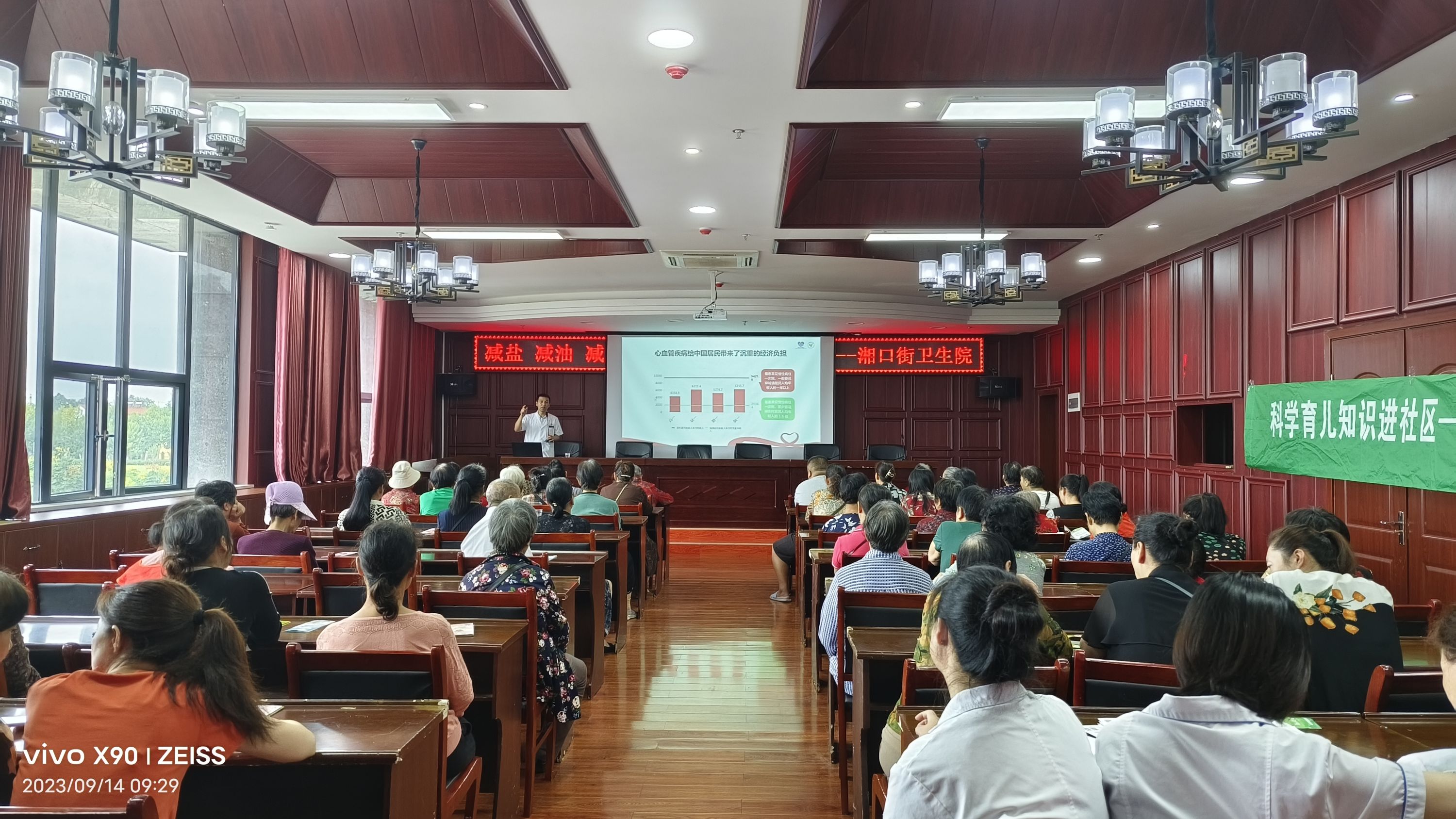 讲座中,湘口街道卫生院院长从心脑血管疾病的概念、种类、病因等方面向大家进行了讲解,对中老年人如何合理饮食、适量运动、保持良好睡眠和精神状态提出建议。