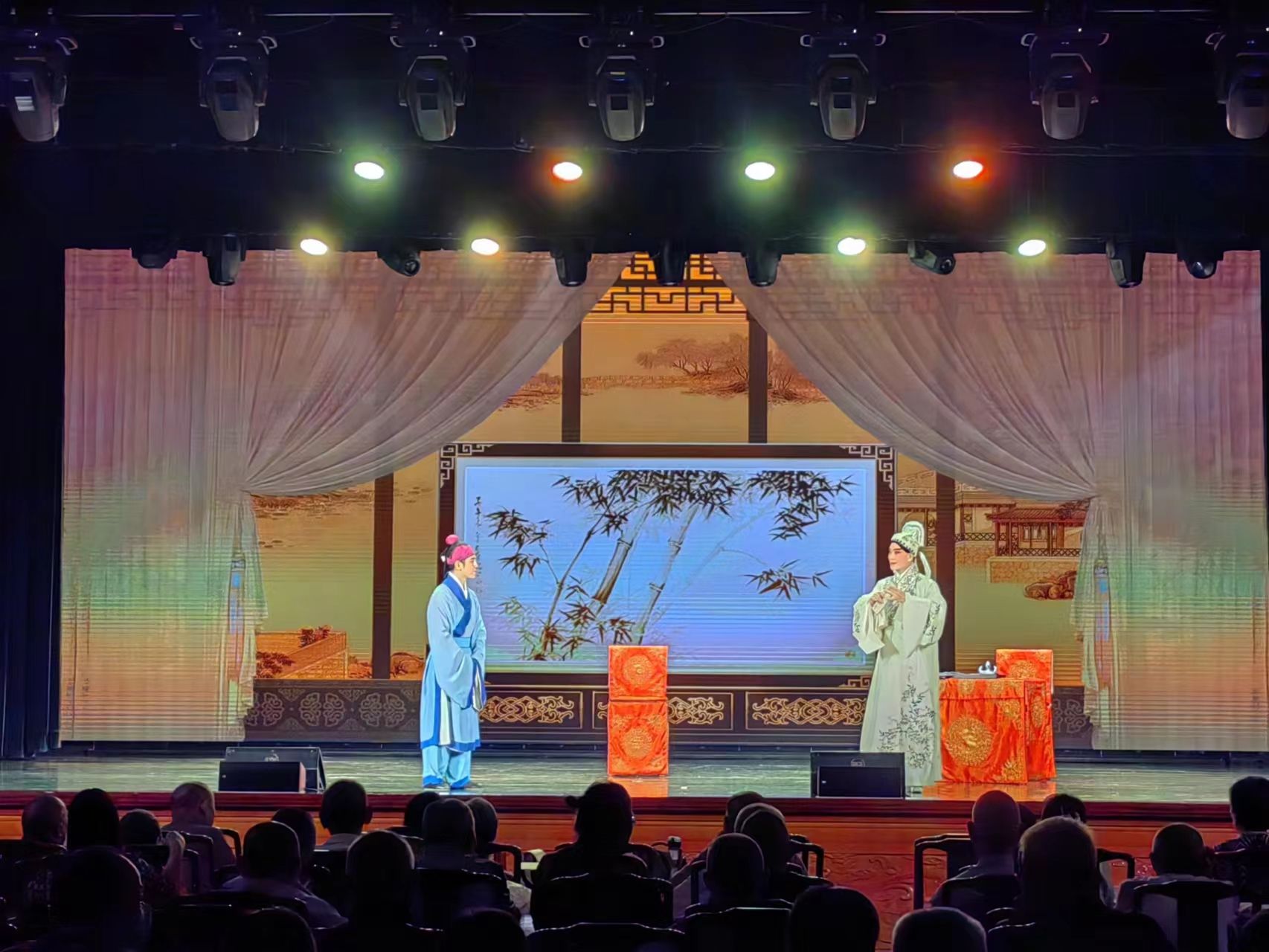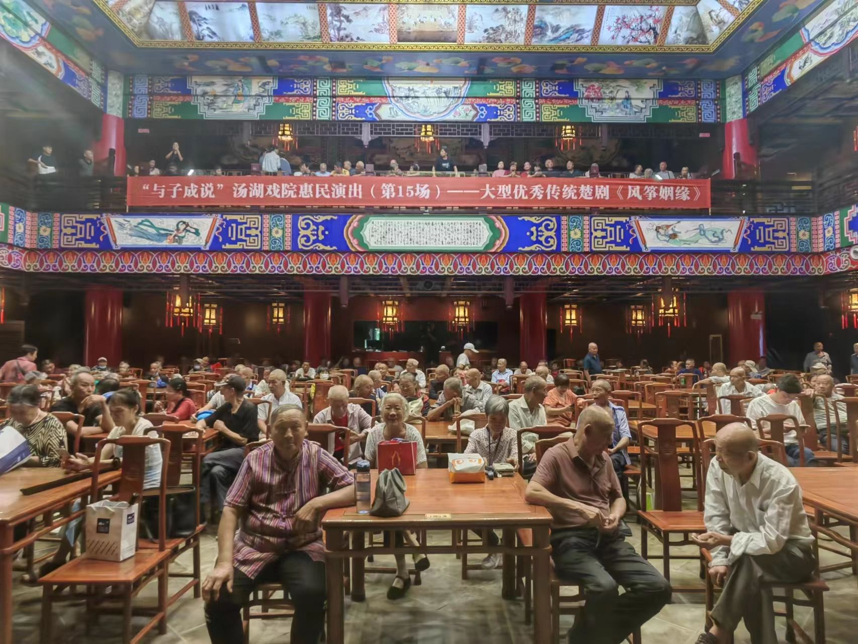 演出现场,大型优秀传统楚剧《风筝姻缘》,以风筝为姻缘的线索,通过一系列巧合与误会编制了紧密的情节,甜蜜的、吵闹的……各有滋味,皆大欢喜。精致的服装、精美的布景、舒适的剧场、演员们精湛的演技、铿锵有力的唱腔,让群众在家门口过足戏瘾。