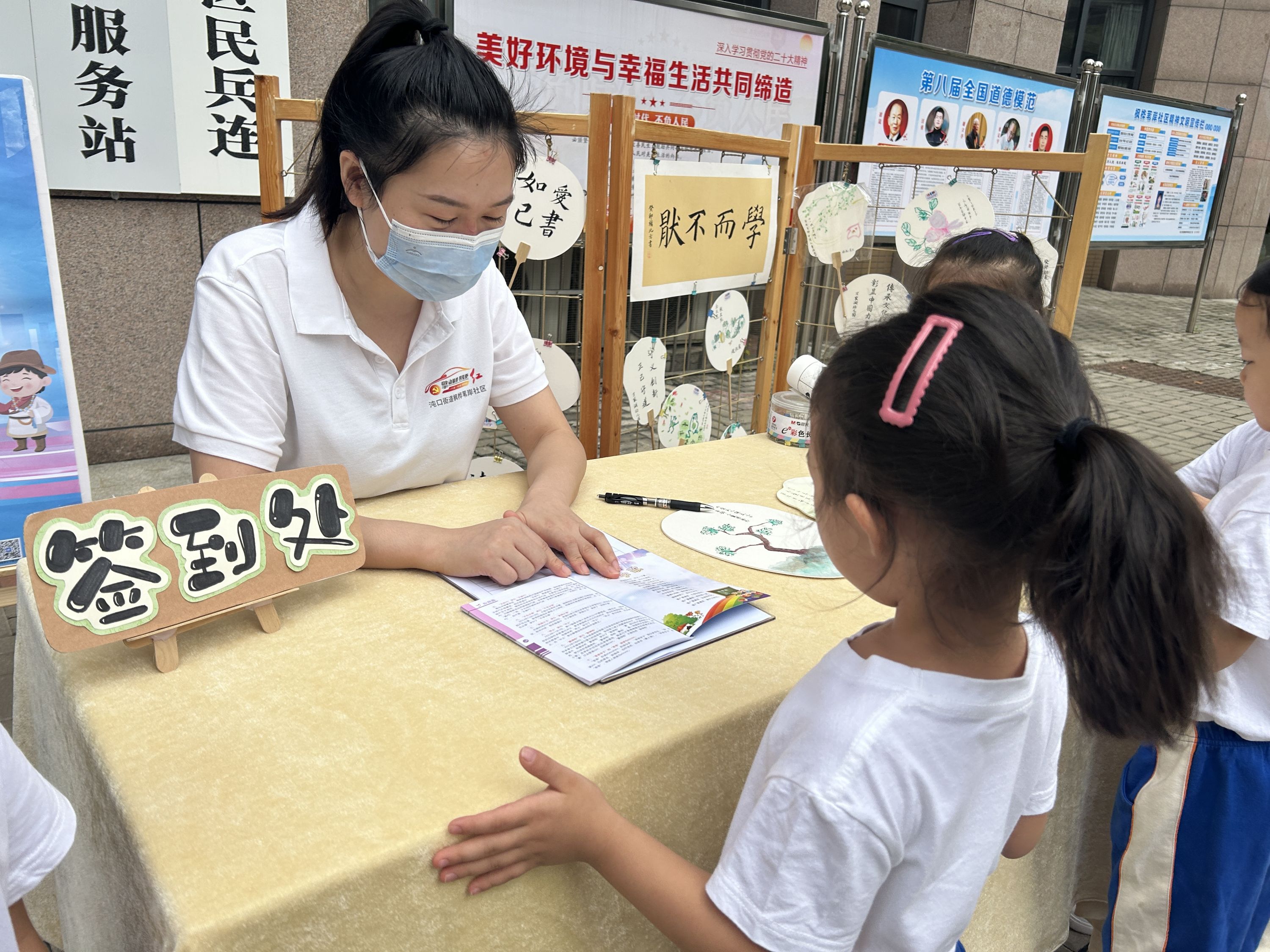 近日,沌口街道枫桦苇岸社区新时代文明实践站联合辖区万家湖幼儿园师生们开展“社校共推普通话,凝心聚力促团结”亲子主题活动。