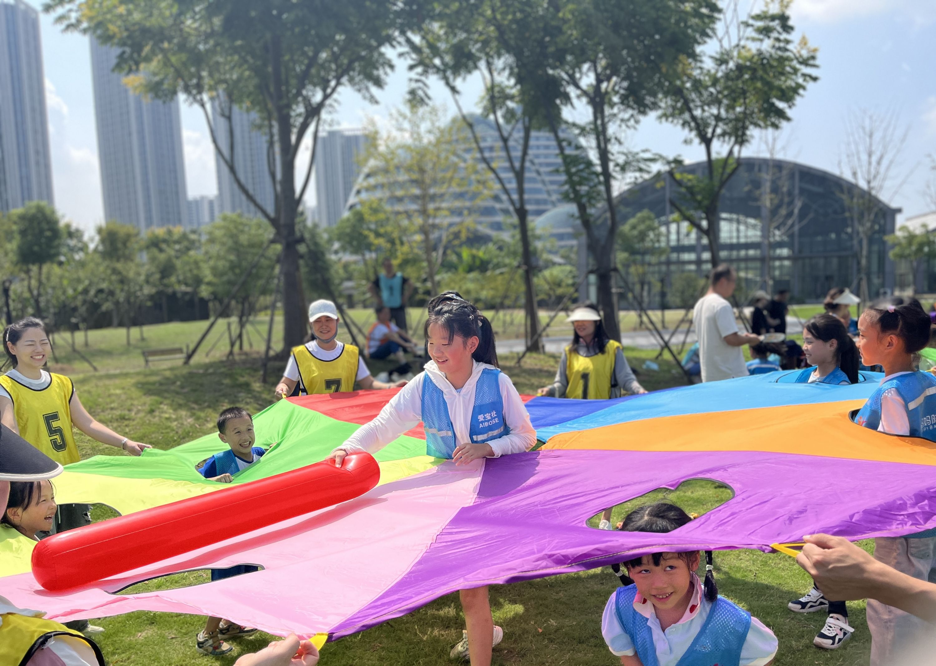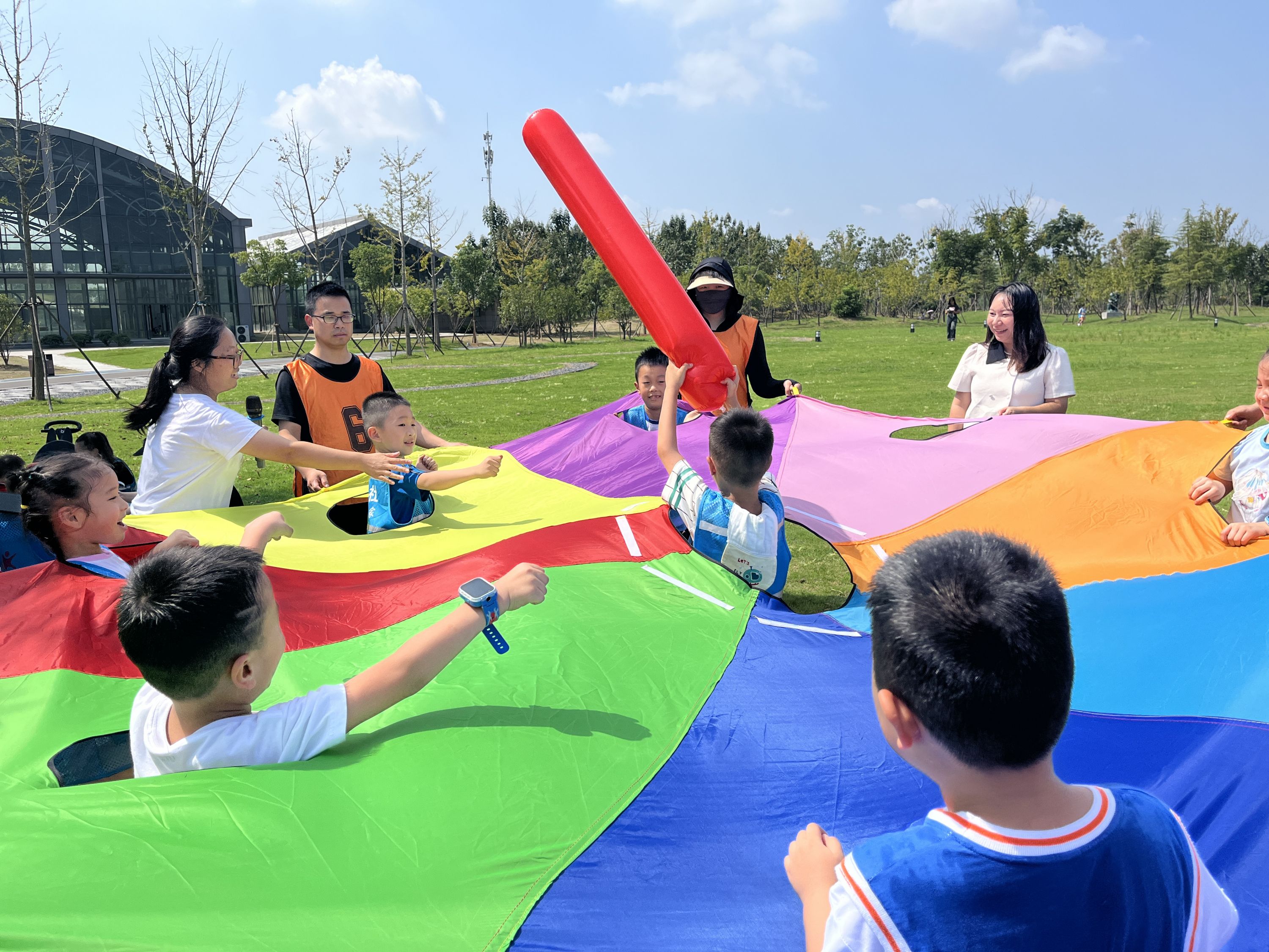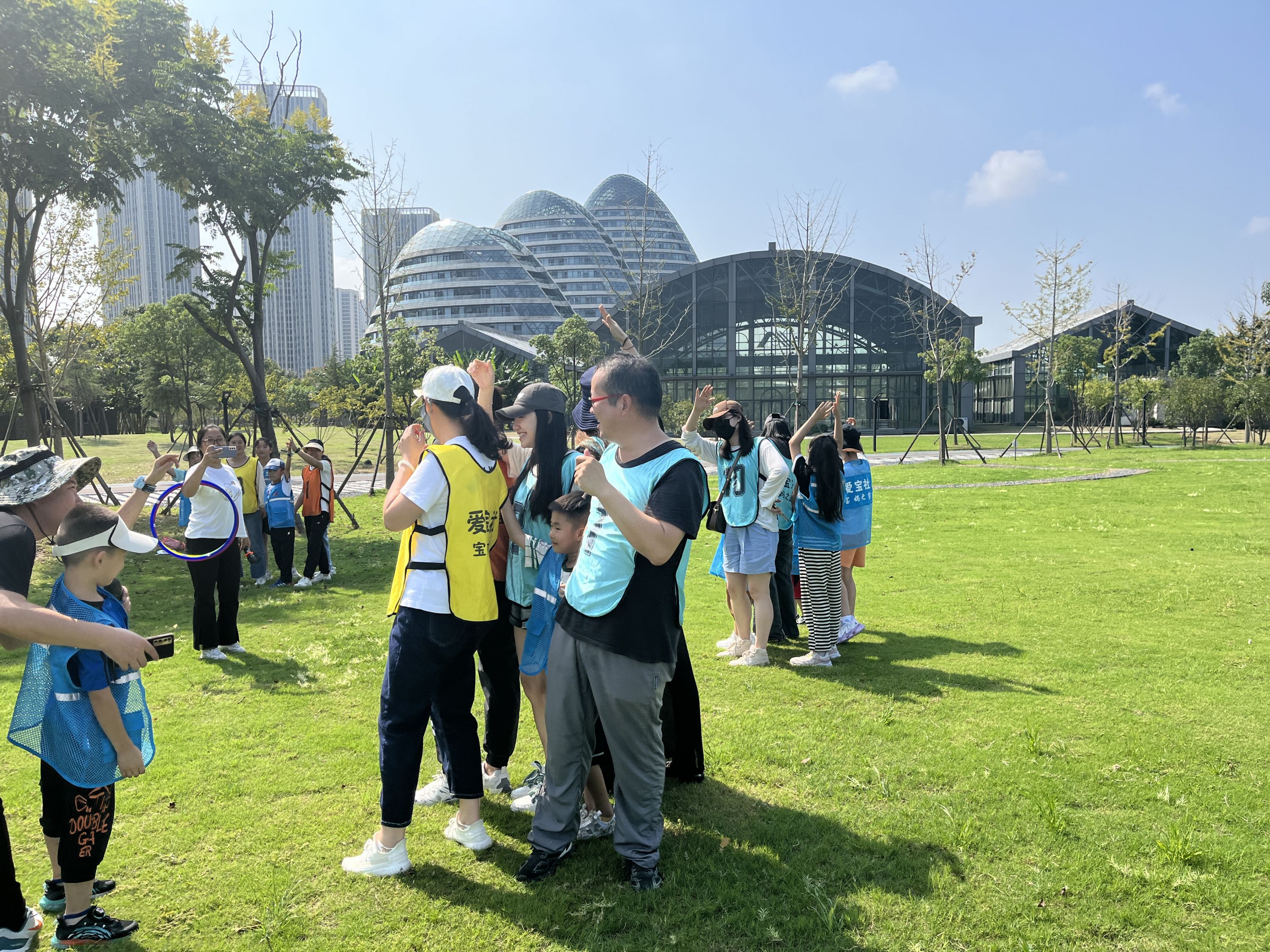 在歌曲《相约杭州》中,运动会拉开序幕。现场设有“快乐蹦蹦跳”“一圈到底”两个亲子家庭项目,“幸福滚滚来”“合力搭建”“快乐打地鼠”三个团队项目,集趣味性、娱乐性、协作性和竞争性于一体。