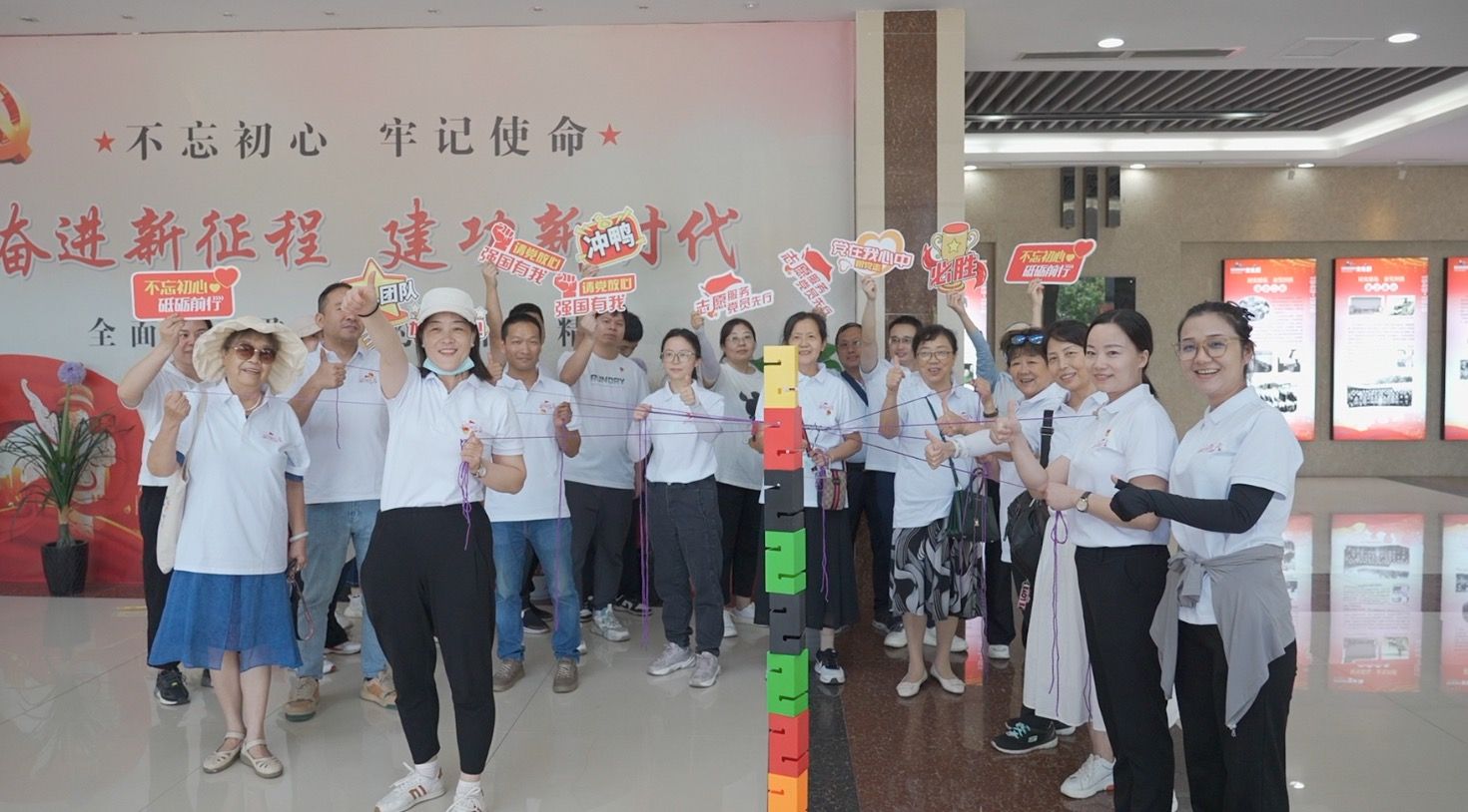 随着此起彼伏口哨声、欢笑声,团建小游戏“合力搭建”“神笔马良”在国防教育大厅热闹进行中。每个小组互相激励,互相比拼,充分诠释了团结、友谊、共进比拼的团队精神。