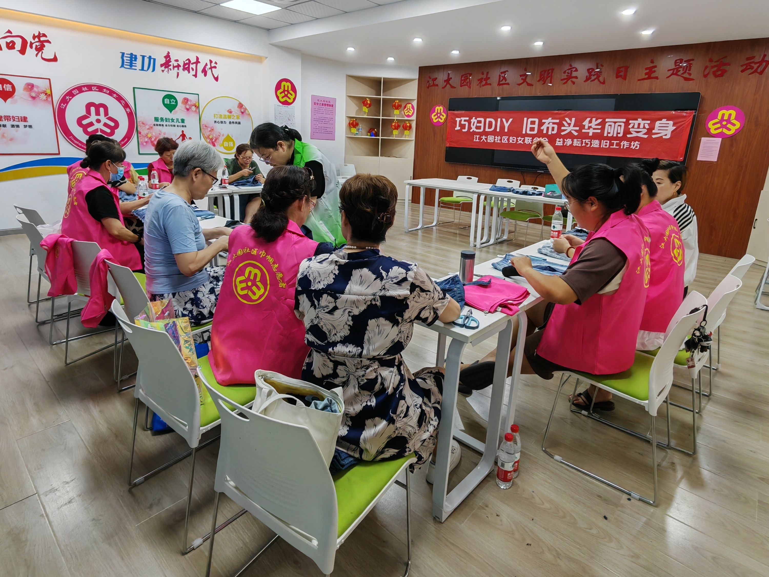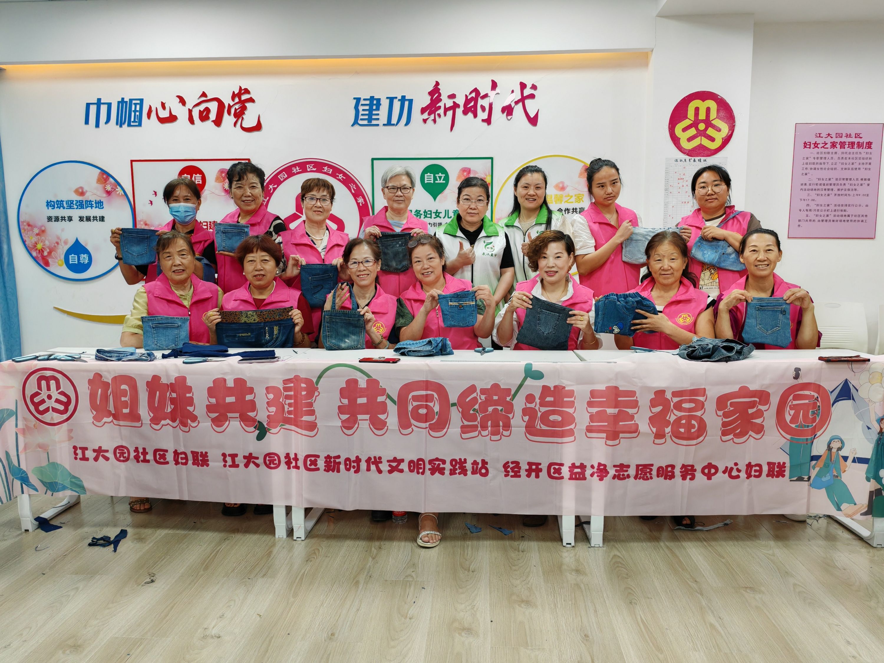 车谷融媒9月21 日讯 9月19日,沌阳街道江大园社区妇女联合会携手益净公益在社区妇女之家开展“巧手姐妹来助力,牛仔新生倡环保”手工活动。