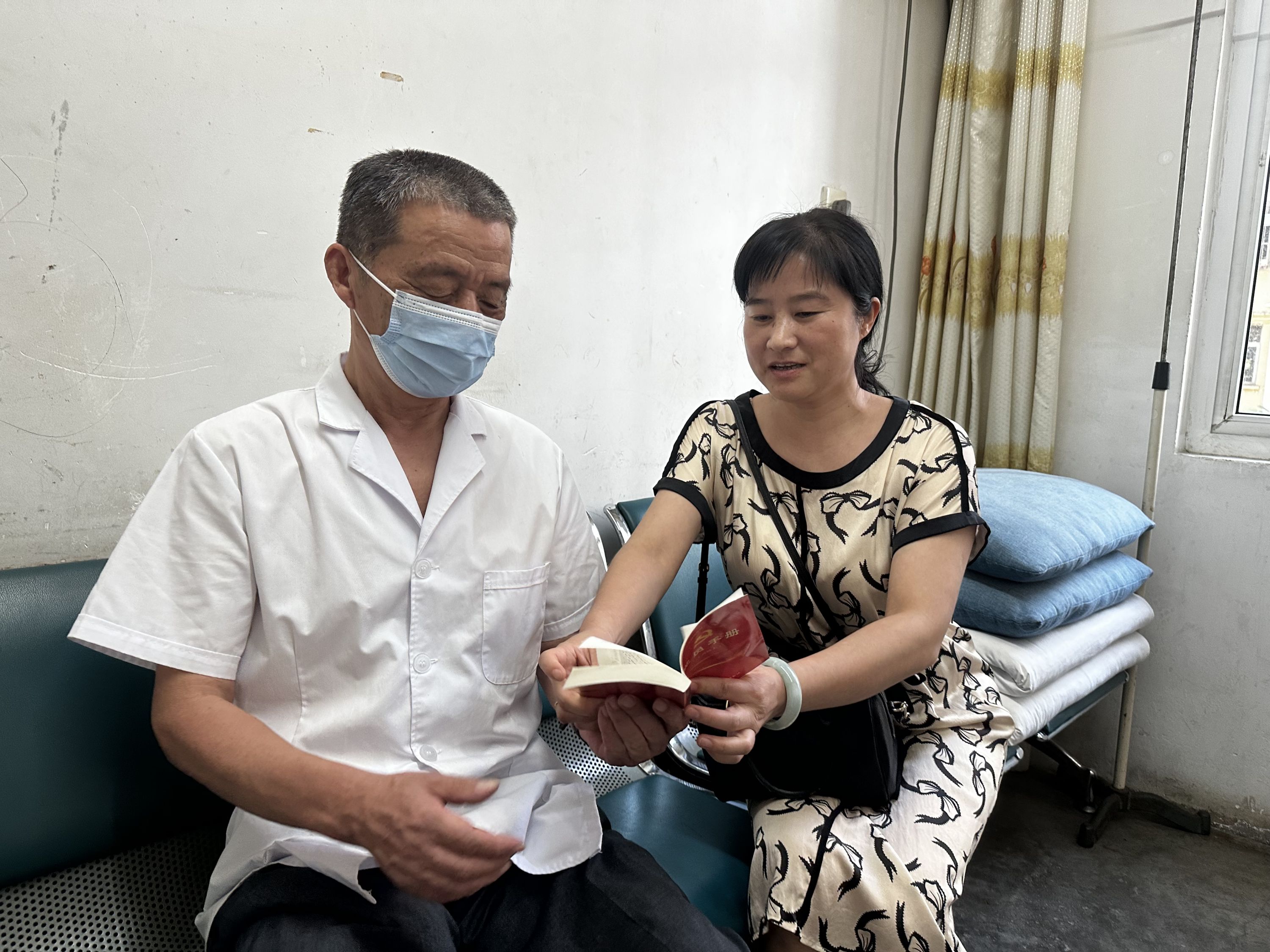 活动以走访慰问、送学上门等形式展开,将党员手册送到老党员的家中,与他们一起学习新党章内容,并将鲜红的党徽戴到老党员的胸前。活动中,工作人员还与他们促膝交谈,详细询问身体和生活状况,认真聆听记录他们的意见和建议。