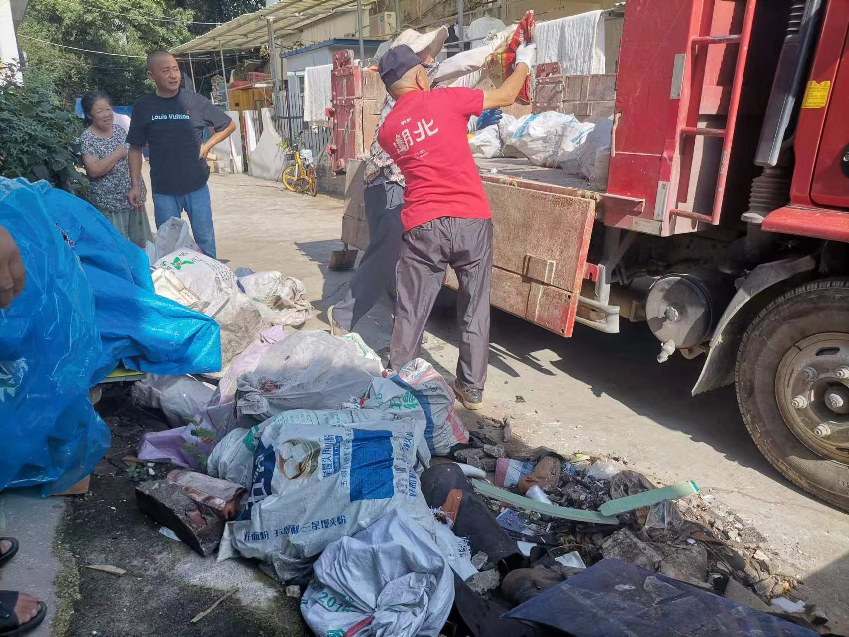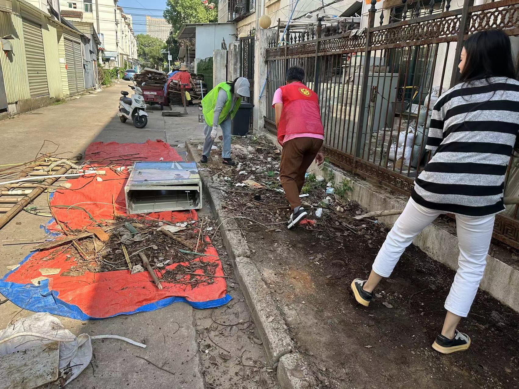 新民花园小区部分草坪堆放了老旧家具、建筑垃圾等杂物,既影响环境,还存在安全隐患。四方行动专班通过“日常巡查+集中清理”,对发现的杂物进行清理,提前与“乱堆放”物品的归属人积极沟通协调,劝导居民自行清理,对于无主或废弃的大件垃圾,集中进行清理。