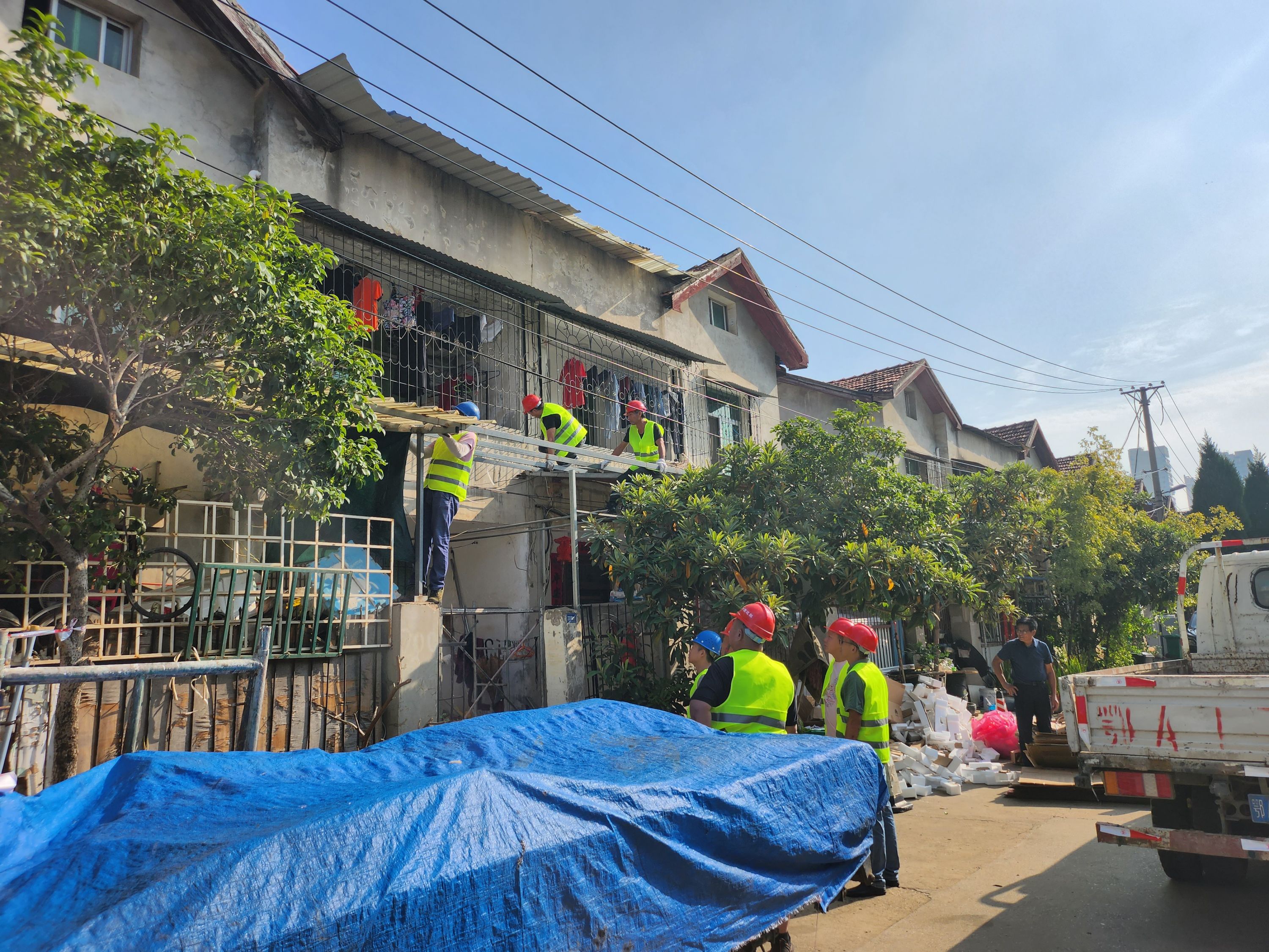 四方行动专班对新民花园小区违规设置的遮阳棚进行拆除,通过整体设计规划,安装遮阳棚,门前外立面干净整洁了。